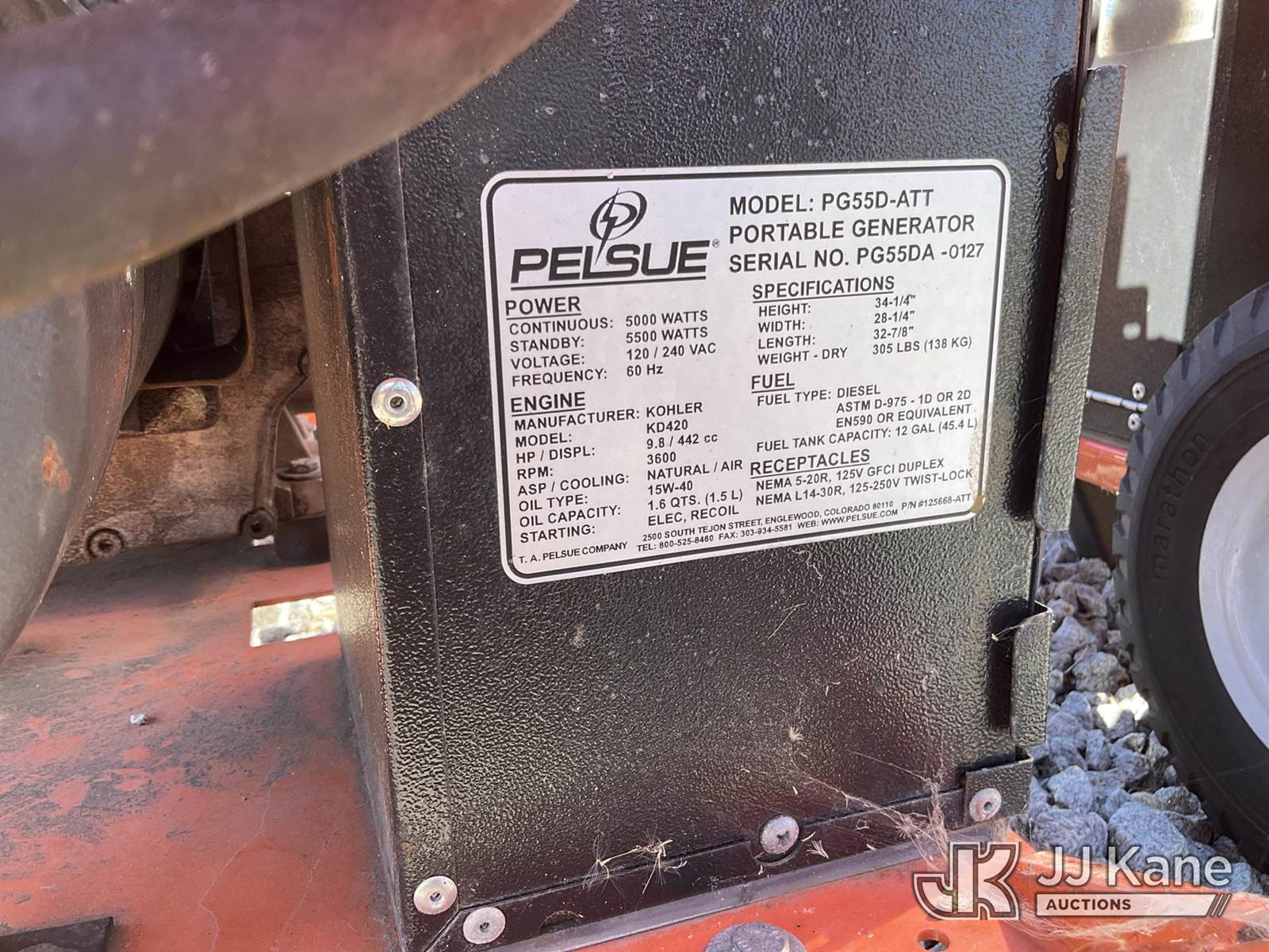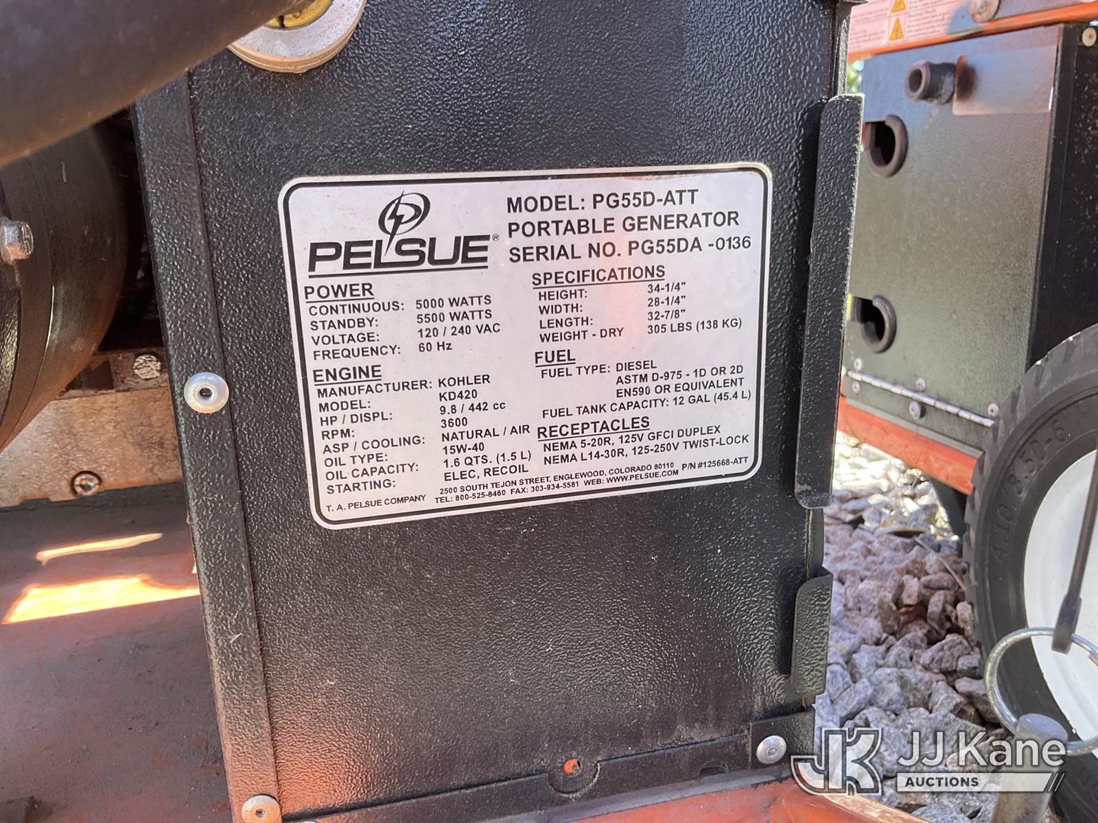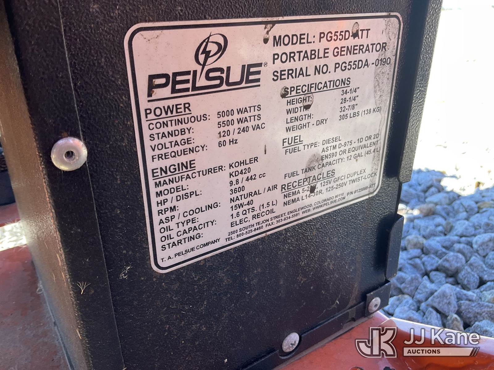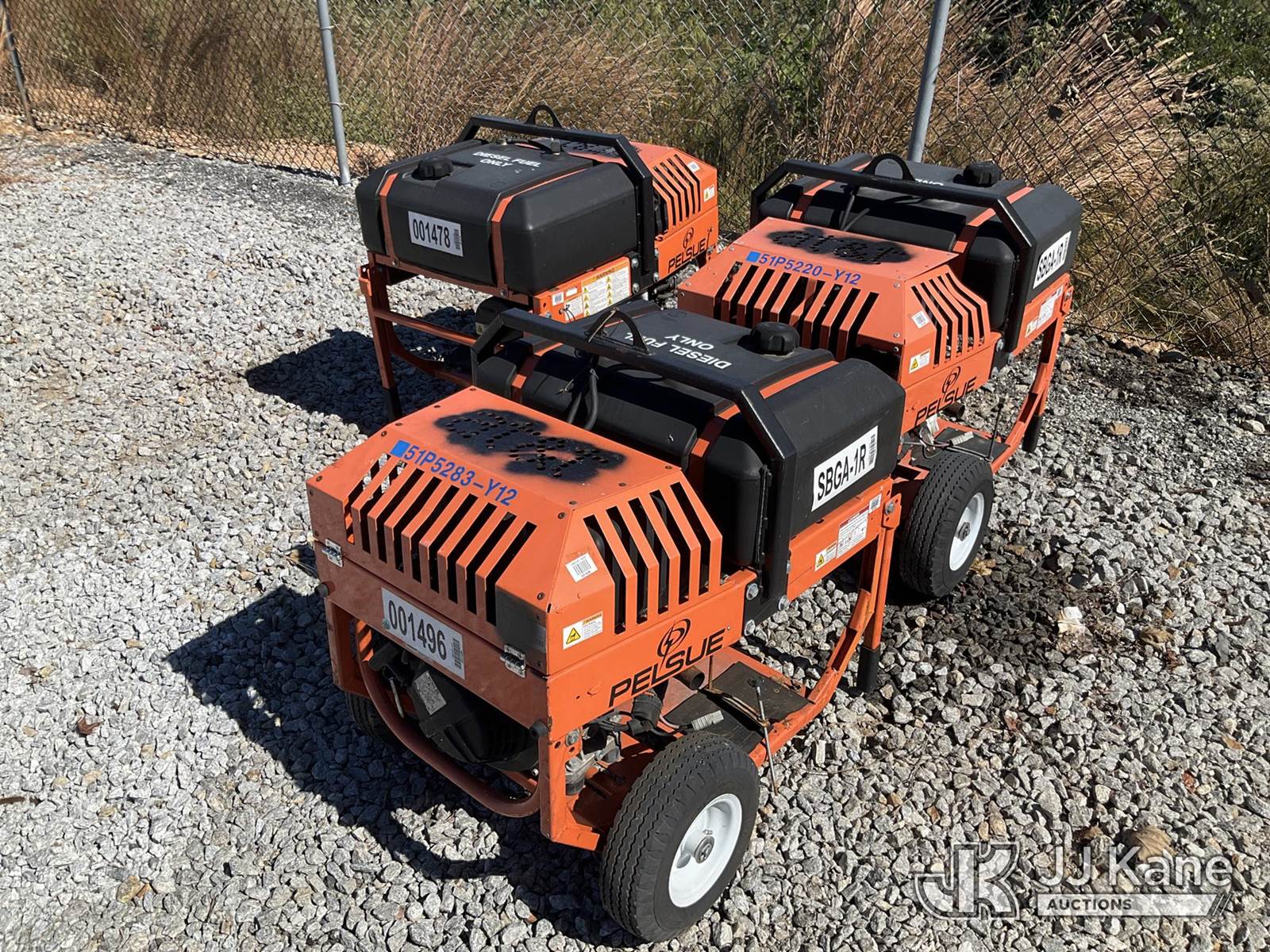 (3) Pelsue Diesel Generators SN: PG55D-0136, PG55DA-0127, and PG55DA-0190 (Condition Unknown) NOTE: This unit is being sold AS IS/WHERE IS via Timed Auction and is located in Villa Rica, GA. Inspection & preview days for this unit are the 2 business days prior to the first day of items closing for this auction, item is located at 100 Liberty Rd Villa Rica, GA 30180 and hours of operations are 8a-4p. For pre-sale questions, please contact Office Staff @ (470) 590-8453. (Buyer is responsible for removal. Assistance by consignor or JJ Kane Auctioneers is not assured.)