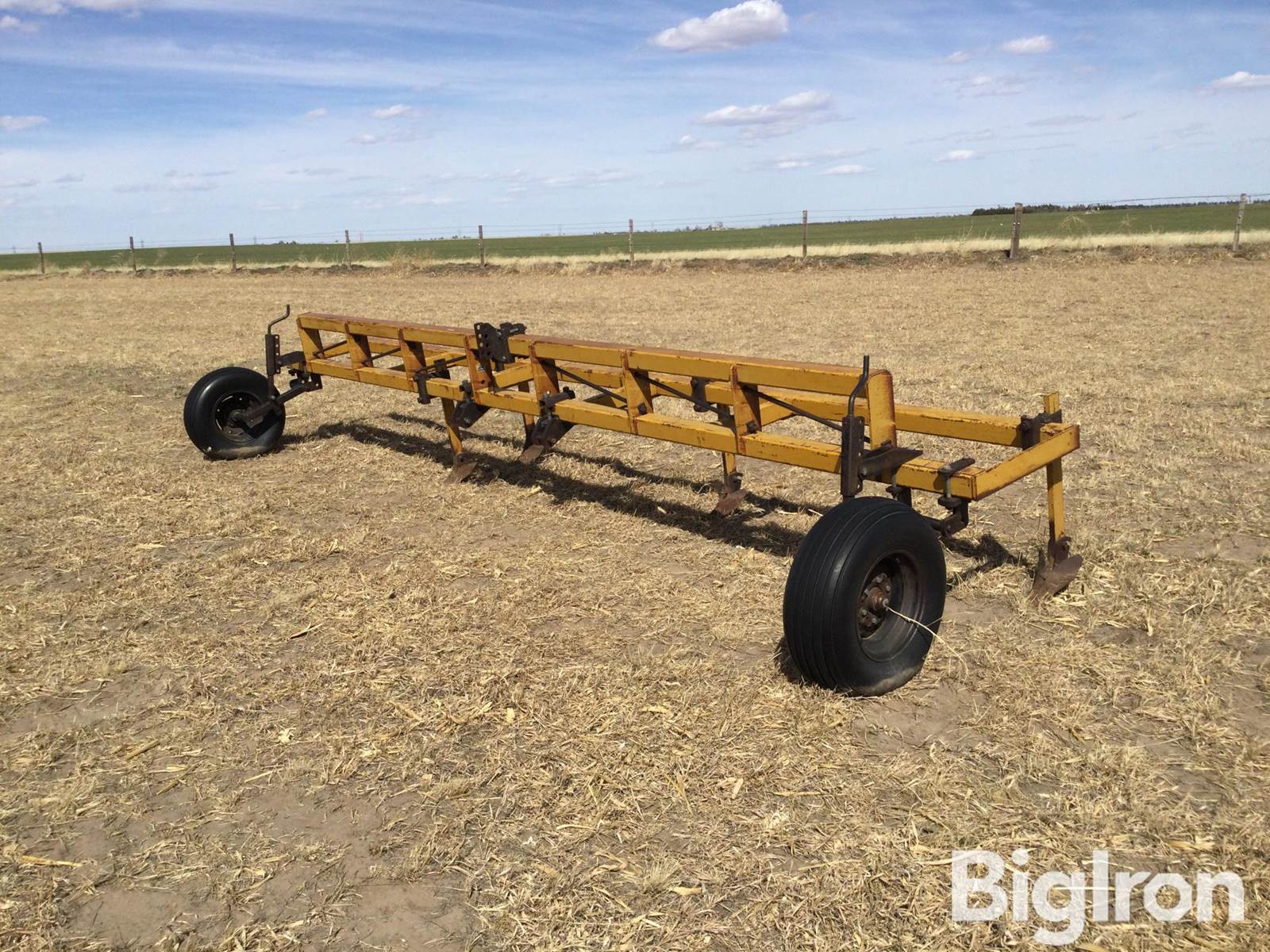 3-Pt Toolbar, Double square tubing bars, 11L-15 gauge wheels, 21' overall width, Some shanks and shovels present