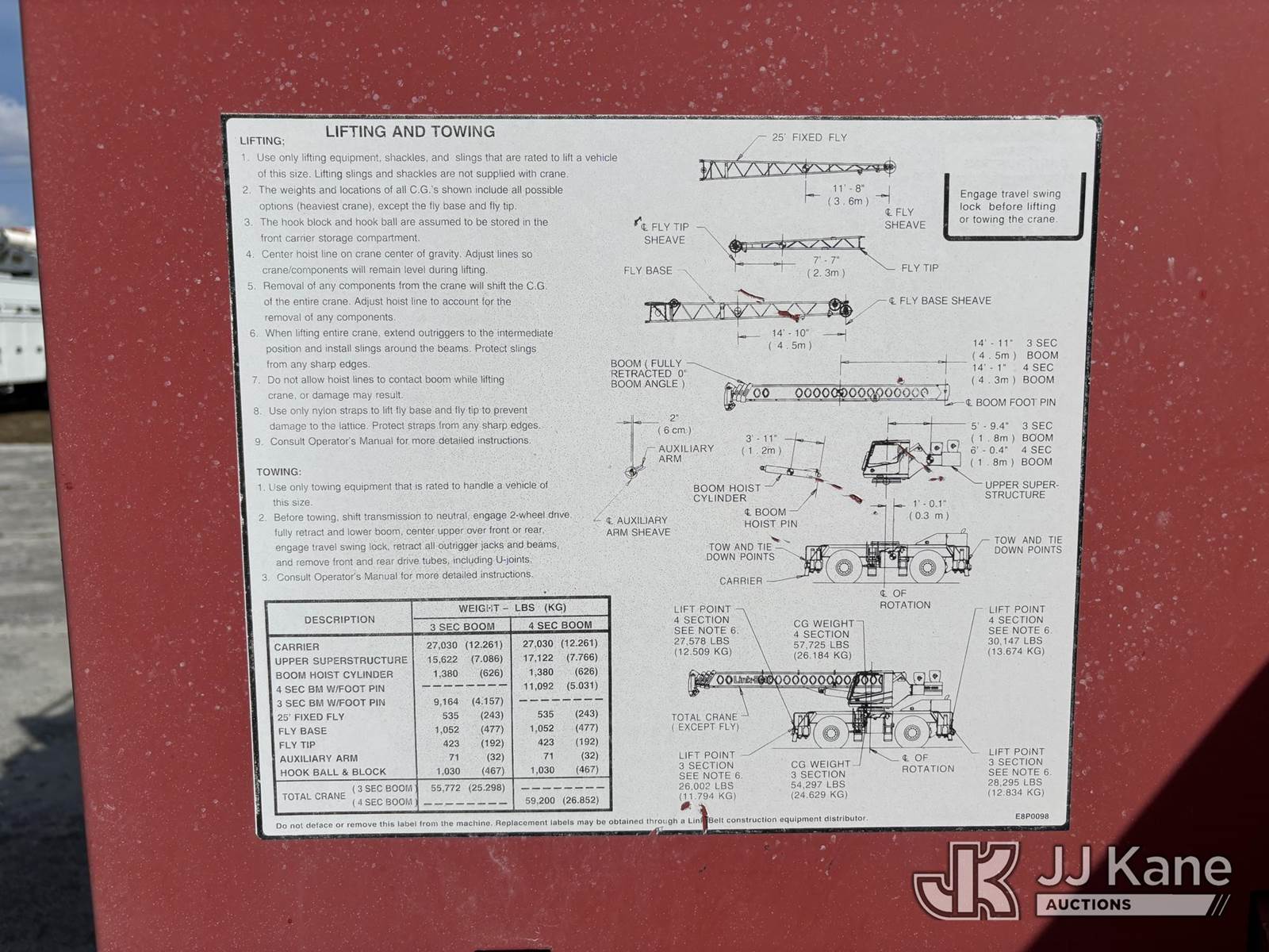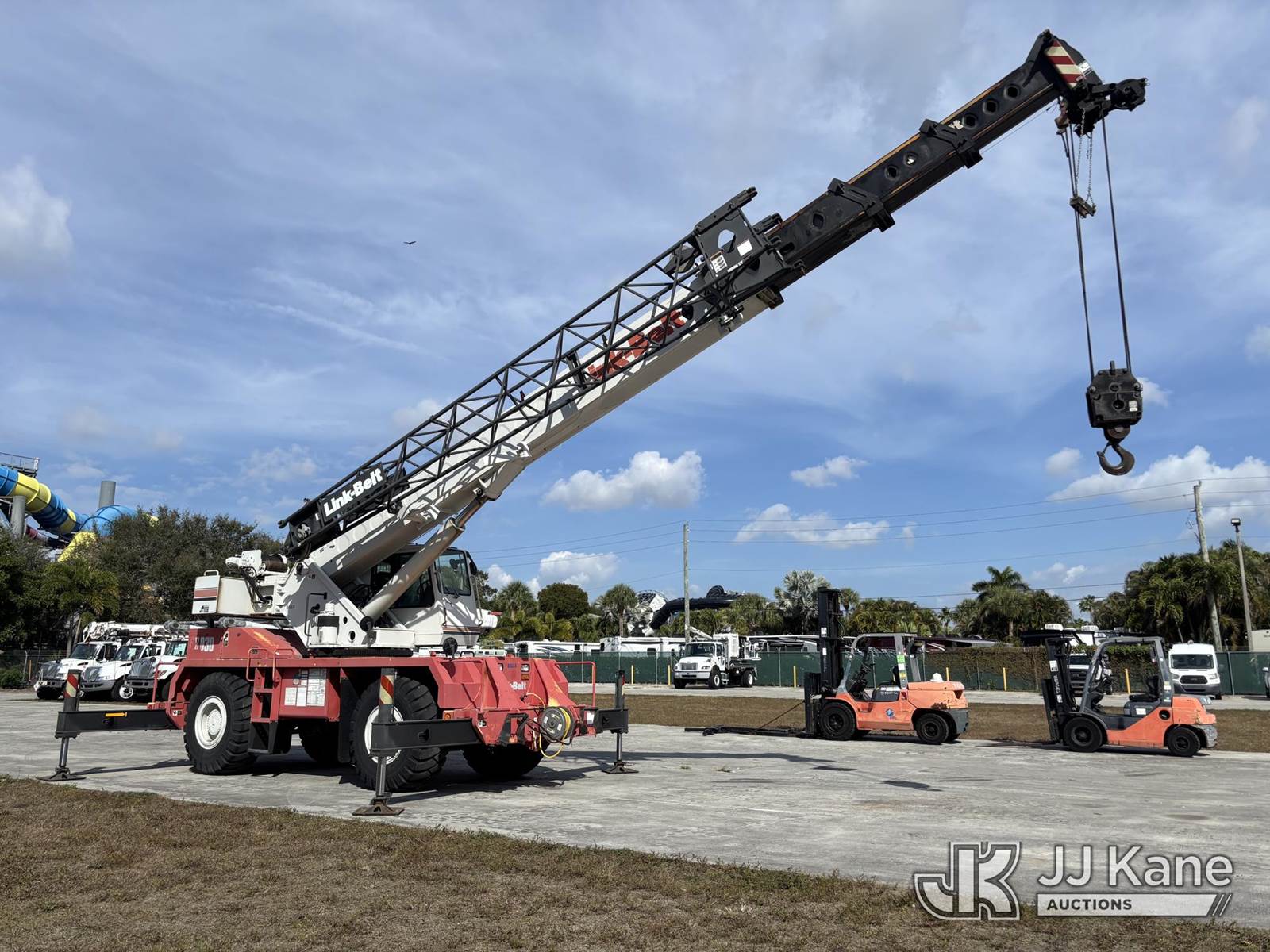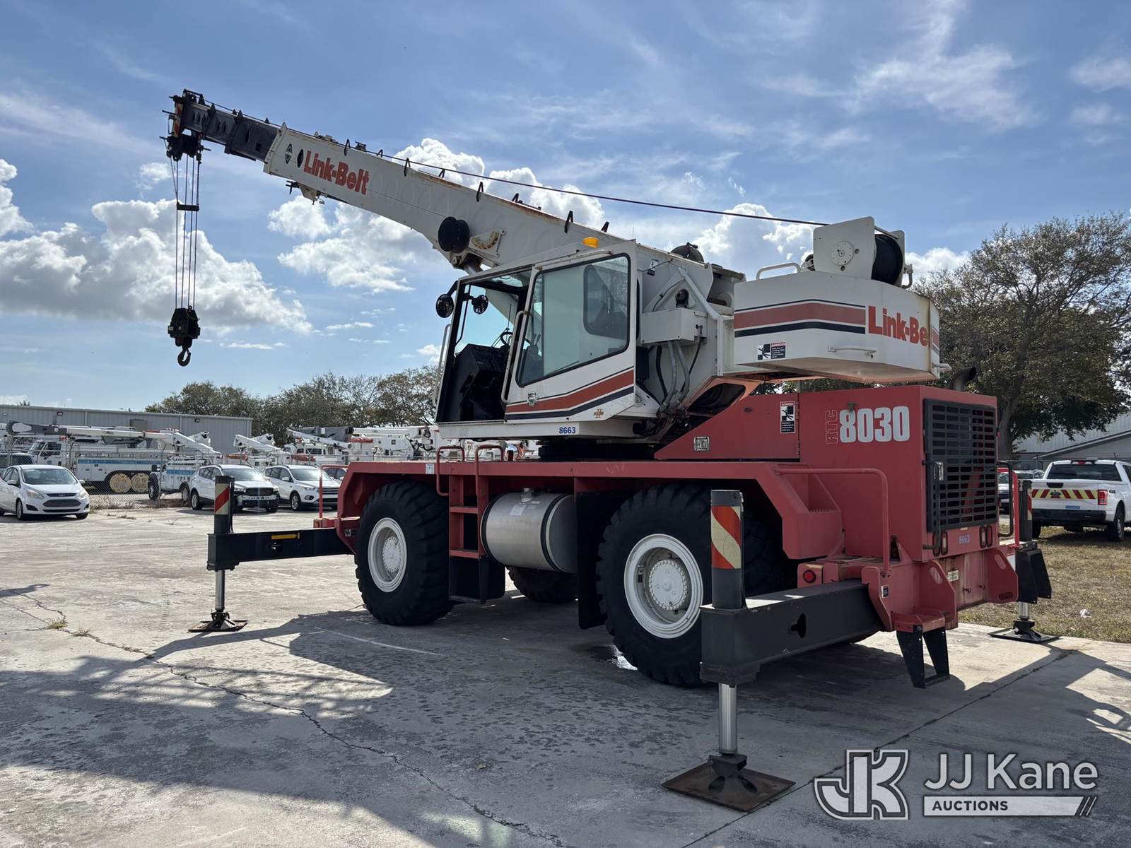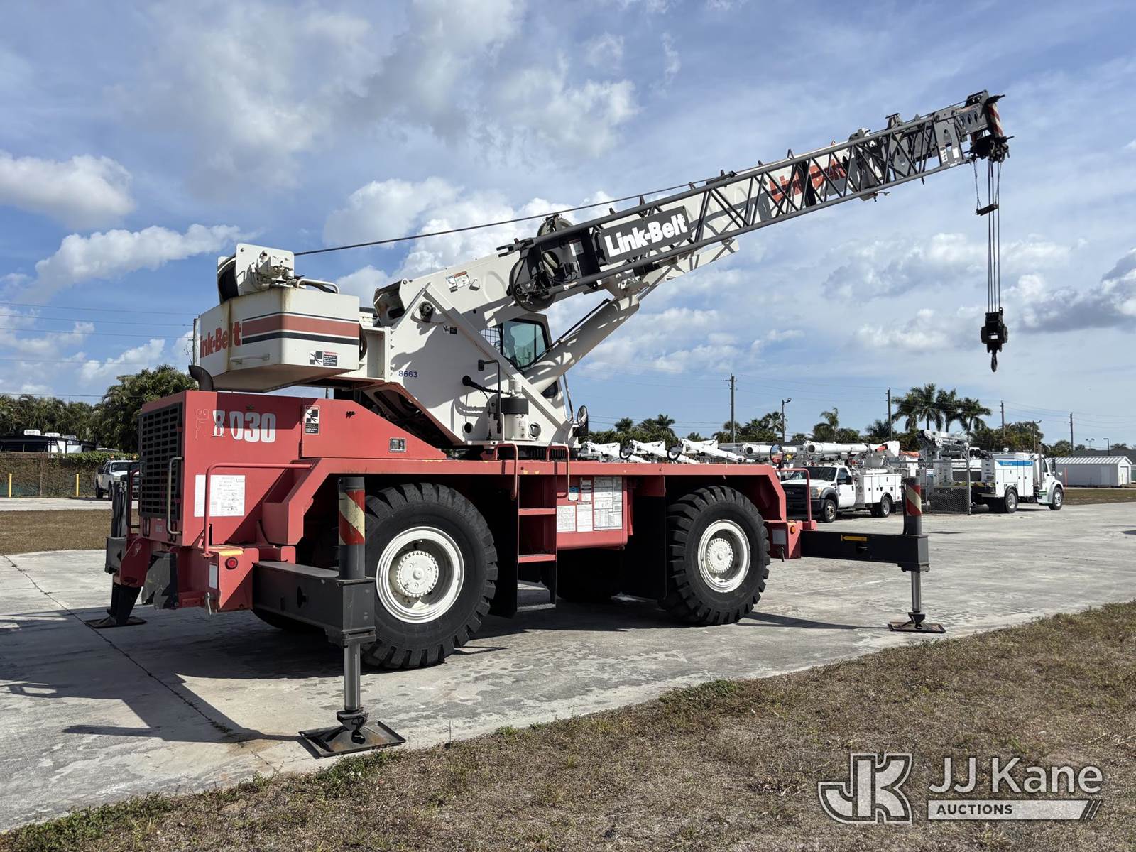 30-Ton 2007 Link Belt RTC-8030 Series II 30 Ton 4x4 Rough Terrain Crane, s/n E8J8-0233, Cummins 5.9L diesel, powershift, A/C, with 113 ft. sheave height, 3 section hydraulic boom, heel winch, hook block, stowable lattice jib, 4 hydraulic outriggers, enclosed riding console, and Link Belt Rated Capacity Limiter, (Runs, Moves, & Operates) (Hour Meter Reads 573 & Add 509 Hours - See Photos, Body & Paint Damage) (Reads 573 hours) NOTE: This unit is being sold AS IS/WHERE IS via Timed Auction and is located in Riviera Beach, FL. An inspection day for FPL auction items will be conducted on the Friday before the auction from 8a-3p at 2455 Port West Boulevard, Riviera Beach, FL 33407. Winning Buyer/Hauler must present copy of paid invoice upon arrival to pick up. For load out and pick up information, please reference the release form sent out after purchase. Any more information please call Andy Garcia @ 561-215-0085. (Missing manuals, See Auction Company for Manufacturers Information to obtain manuals) (Buyer is responsible for removal. Assistance by consignor or JJ Kane Auctions is not assured.)