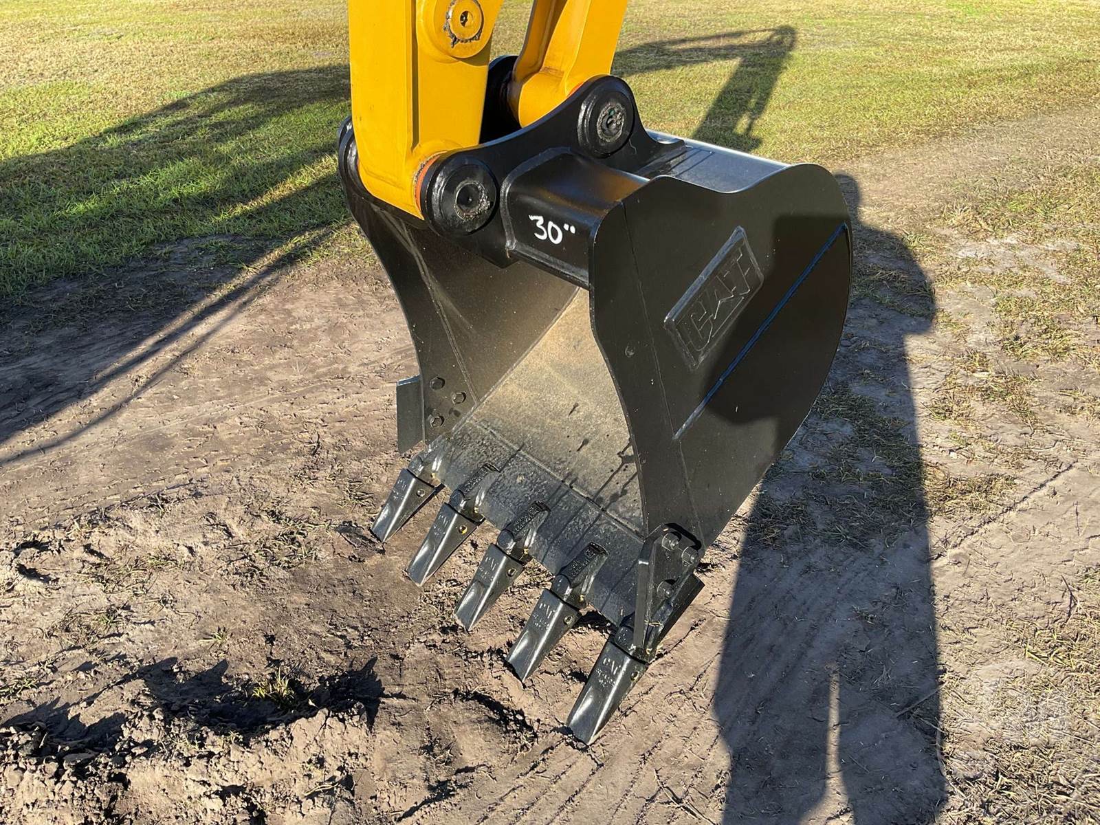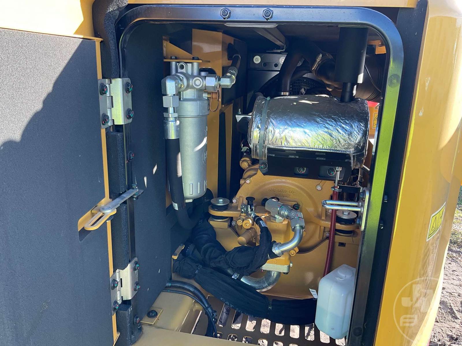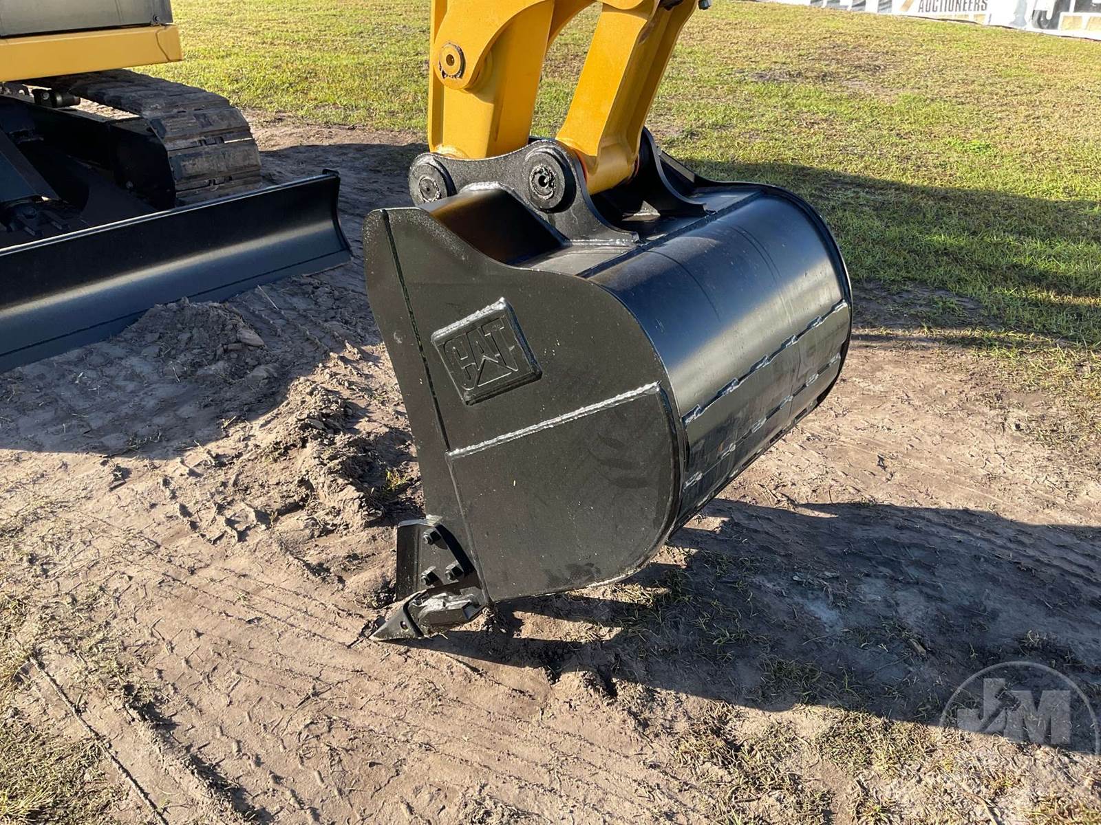 CATERPILLAR MINI EXCAVATOR, CAB, AC, RADIO, 4' 11" STICK, 28" BUCKET, MANUAL COUPLER, PATTERN CONTROL CHANGER, OFFSET BOOM, DOZER, 16" W/ RUBBER PADS, HOUR METER READS: 4