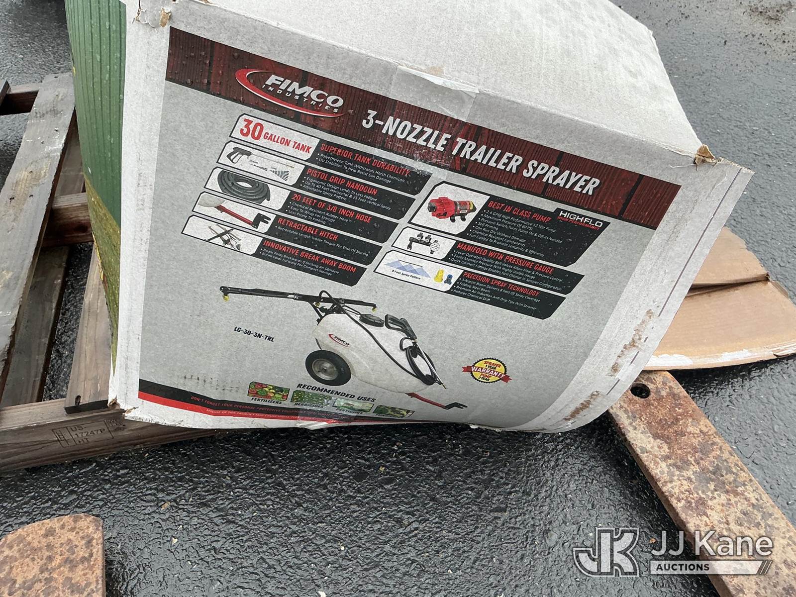 30gal 3 Nozzle Trailer Sprayer (New) NOTE: This unit is being sold AS IS/WHERE IS via Timed Auction and is located in Dixon, CA. Inspection & preview days for this unit are the 2 business days prior to the first day of items closing for this auction, item is located at 8668 Sparling Ln Dixon, CA 95620 and hours of operations are 8a-4p. For pre-sale questions, please contact JJ Kane Staff at (707) 678-8060 (dixon@jjkane.com). Dealer License Number 45696. (Buyer is responsible for removal. Assistance by consignor or JJ Kane Auctions is not assured.)