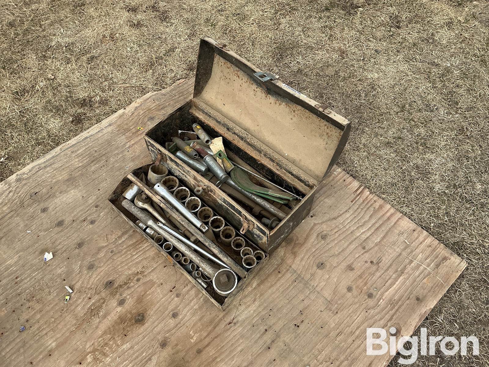 3/4” Socket Set and Tools, Qty-1 Shop Toolbox with Tools and Supplies, 3/4” and 1/2” Socket Sets, Various Springs and Pins in Box, NOTE: See Photos for Overall Condition, Item Must Be Removed by May 1, 2026 or Will Be Considered Abandoned and Discarded, Property Being Sold