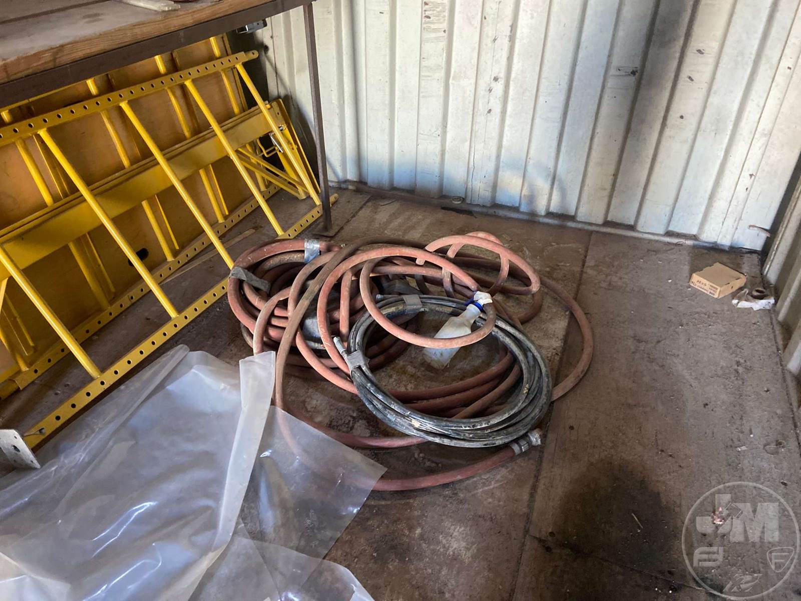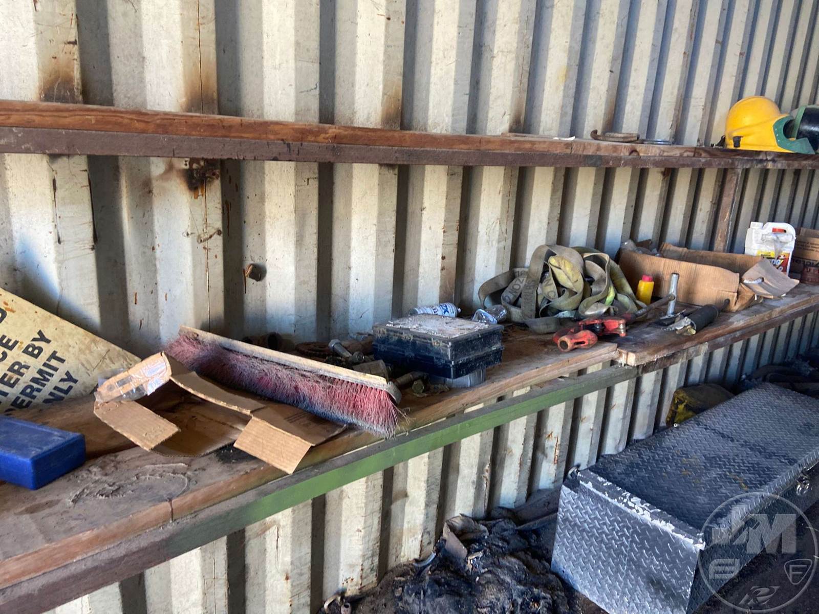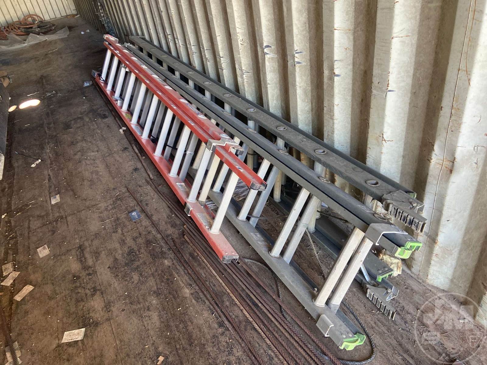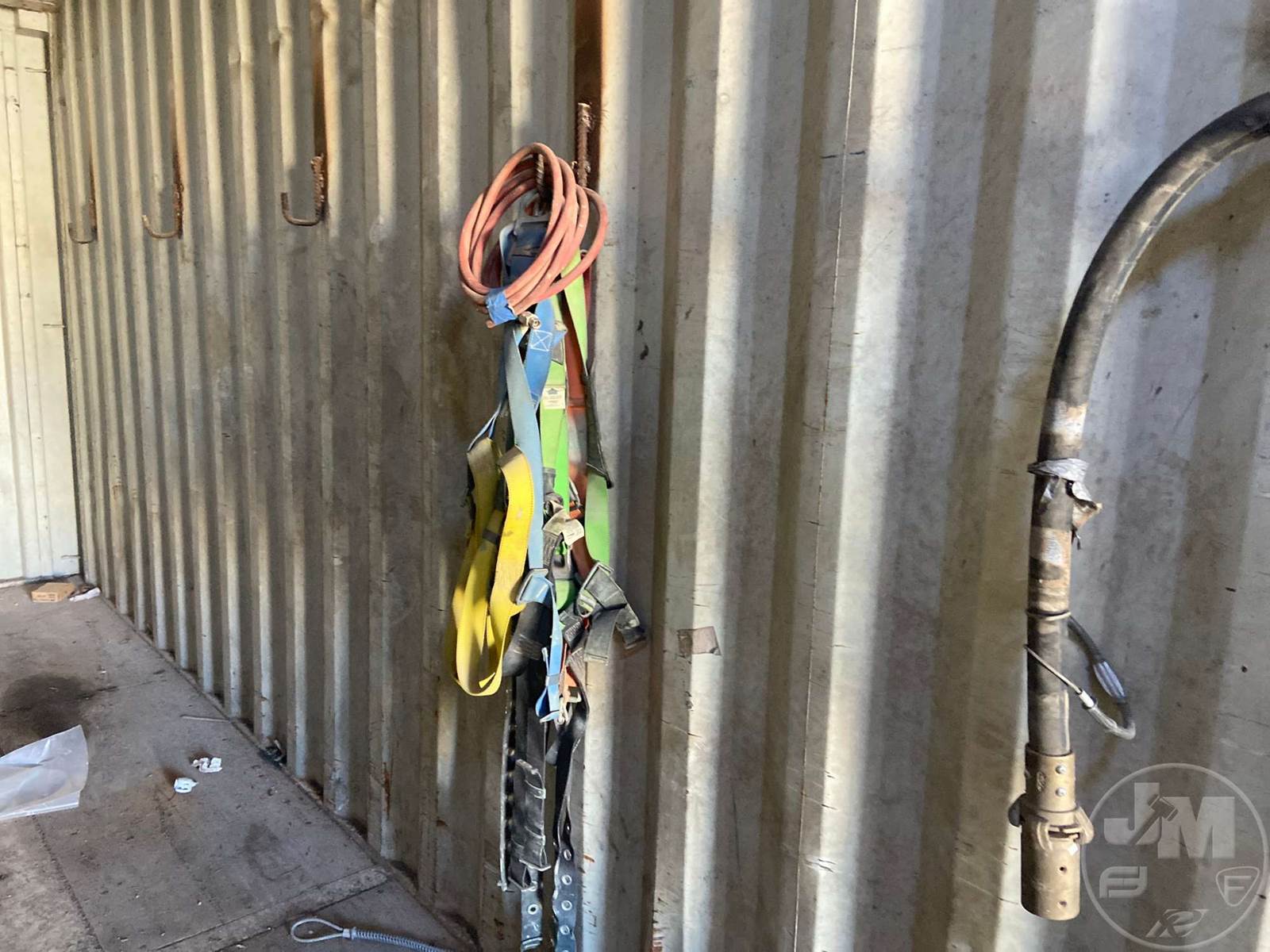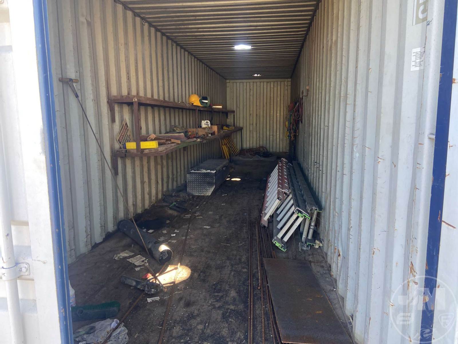 40' CONTAINER, STORAGE, WOOD FLOOR, W/CONTENTS, 4 LADDERS, TOOL BOX, VARIOUS HAND TOOLS, AIR HOSE, HARNESSES***LOCATED IN DILLEY, TX***