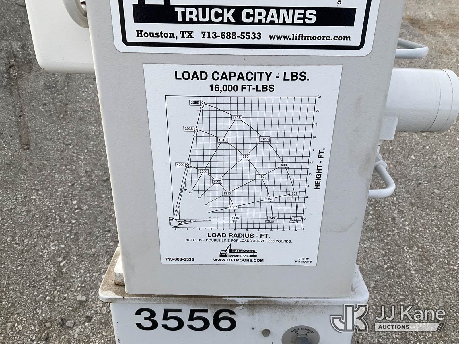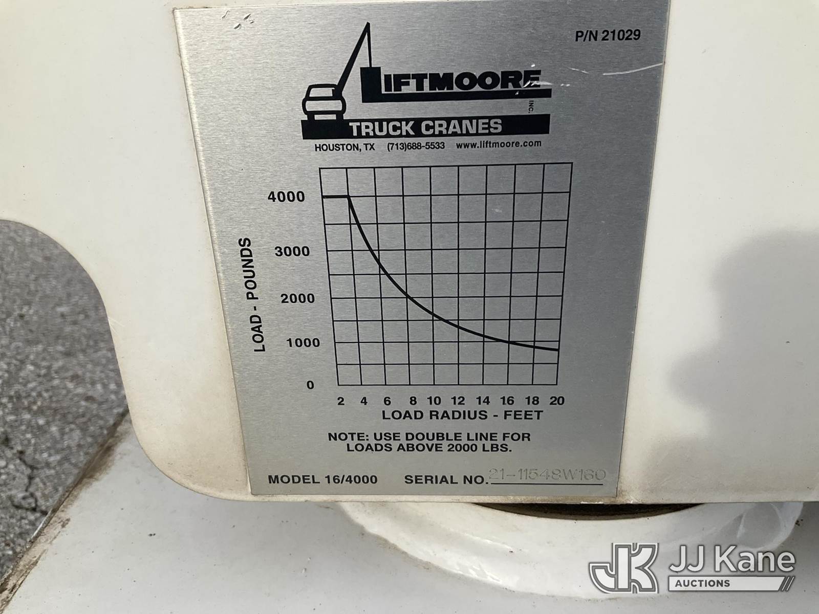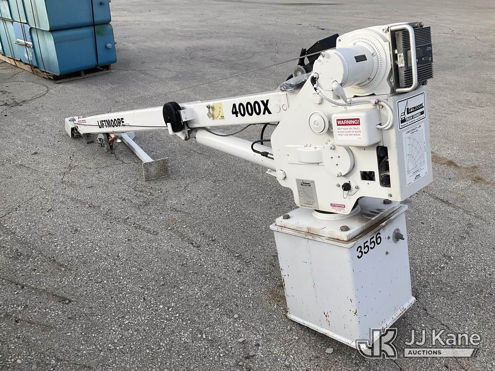 4000X Liftmoore Truck Crane) (Model 16/4000, Serial # 21-11548W160, Controller In The Office NOTE: This unit is being sold AS IS/WHERE IS via Timed Auction and is located in Kansas City, MO. For more information and removal arrangements please contact Ricky McPherson @ 816-610-2250. Load out by appointment only, Buyer/Hauler must present copy of paid invoice upon arrival. Purchaser acknowledges ALL lots must be removed within 5 business days of Auction. Items not removed in a timely matter will be transported by a third party to a storage facility. Buyer will be responsible for transport and storage fees. For load out and pick information, please reference the hauler sheet sent out after purchase. (Buyer is responsible for removal. Assistance by consignor or JJ Kane Auctions is not assured.)