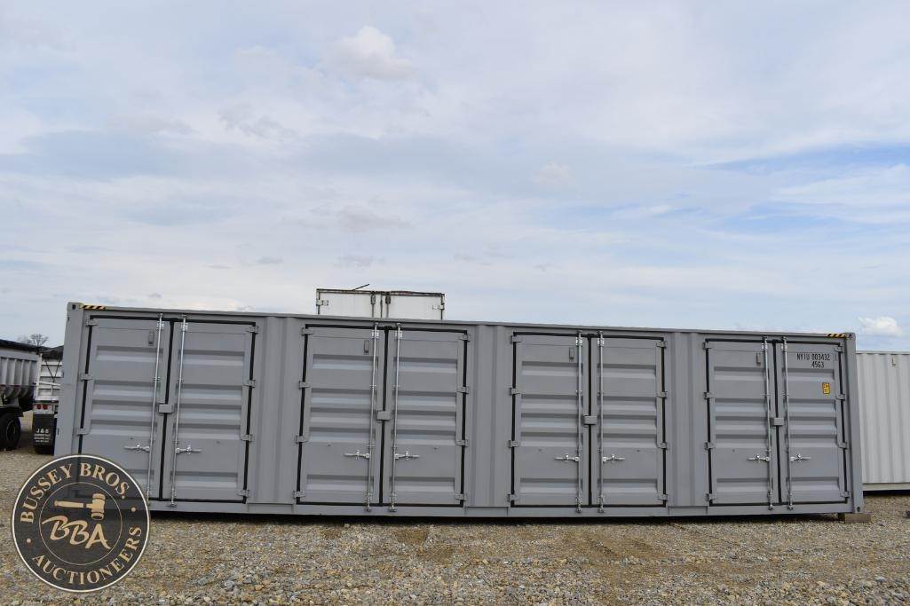 40ft Shipping Container 4 large side entry doors, rear double doors, wood floor, one trip use, Container#NYIU0034321