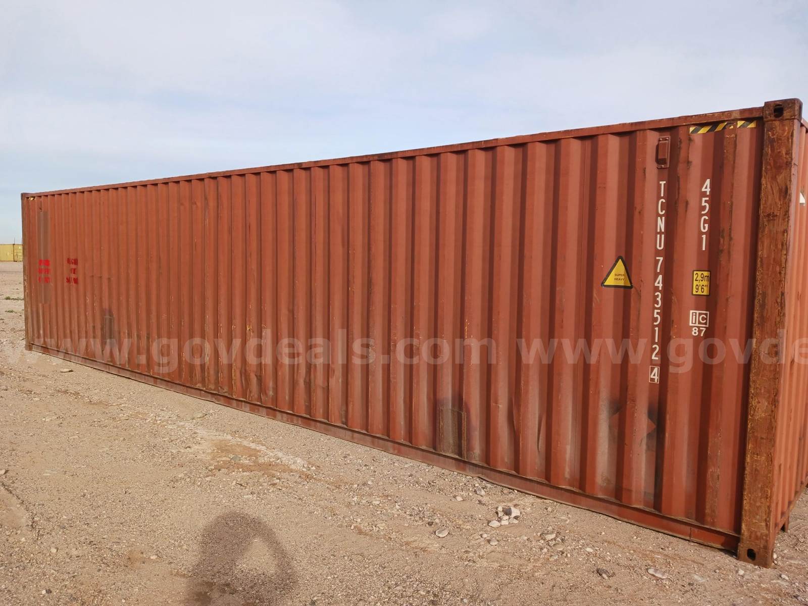 40ft Storage / Shipping Container #TCNU 743512 40' Length, 8' width. The storage container is as-is, how-is, where-is. There will be no viewing opportunities for the containers. These containers have been heavily used and have noticeable dents, rust, cracks, and other damage. GovDeals.com is an online auction platform where you can bid on and buy commercial and government surplus. **PRICE REFLECTS CURRENT HIGH BID AND IS SUBJECT TO CHANGE AT ANY TIME DURING THE ONGOING AUCTION**