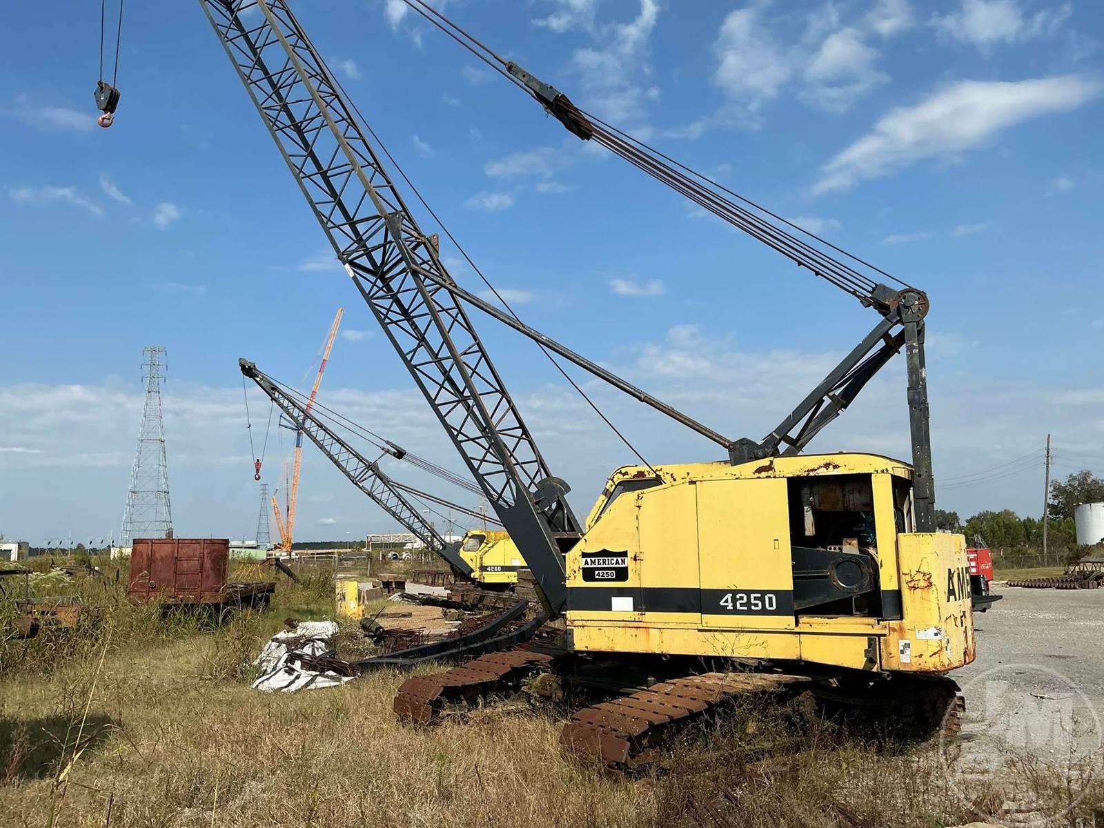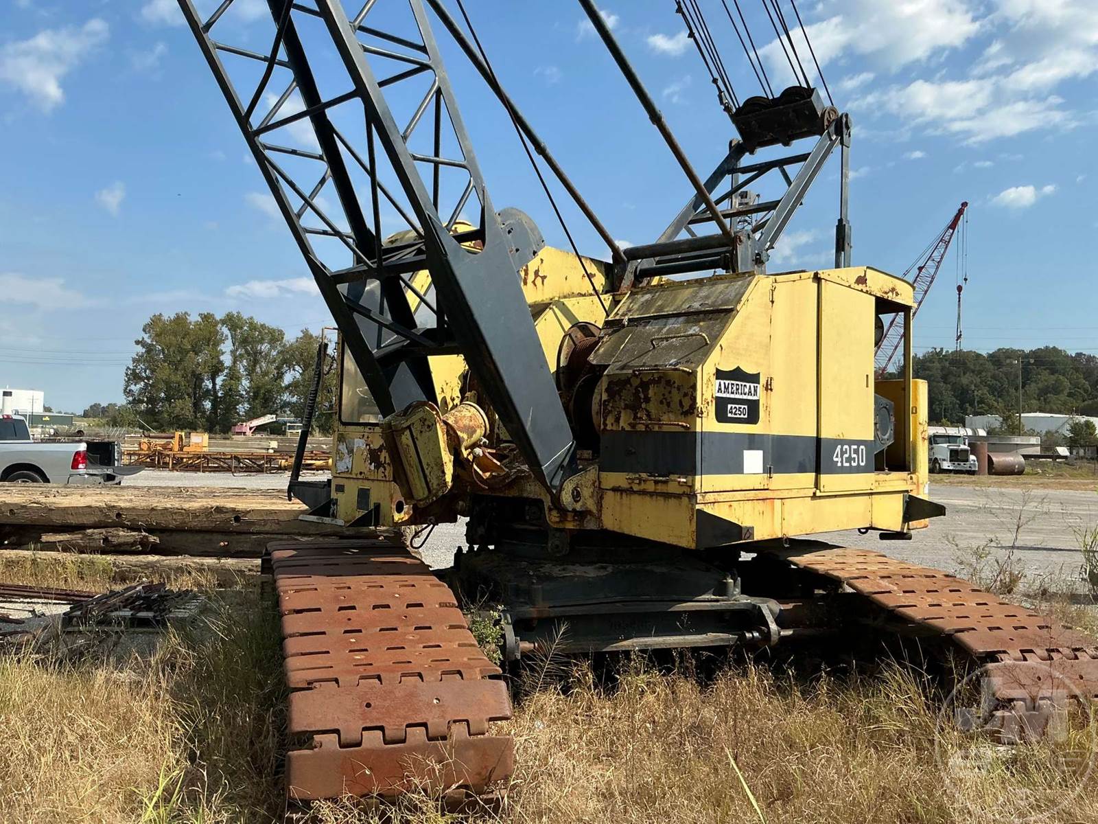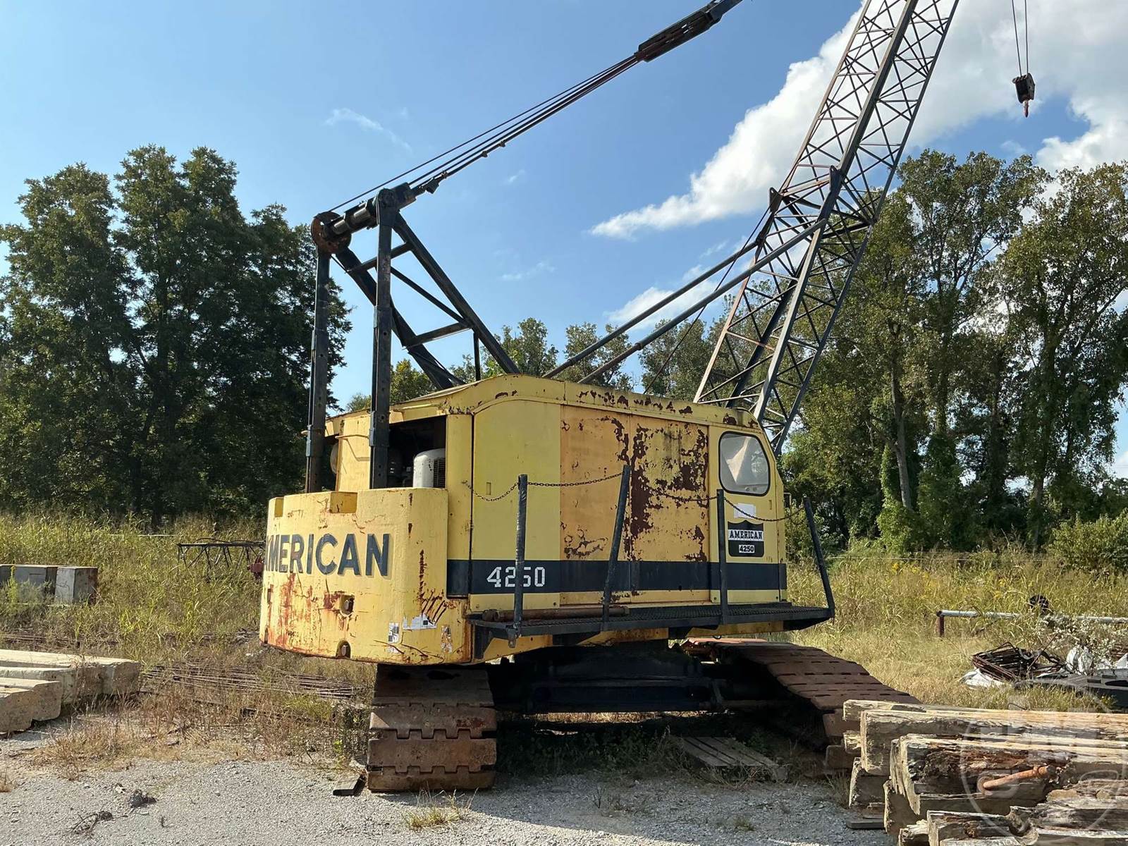 AMERICAN CRAWLER CRANE, LATTICE BOOM, 35 TON TON CAPACITY, 100' BOOM LENGTH, HEEL SECTION, BOOM TIP SECTION, AUX WINCH, THIRD DRUM, FREE FALL, NO BLOCK, CAB, GM DIESEL, 6 CYL , AIR OVER HYDRAULIC CONTROLS, EXPANDABLE TRACK SYSTEM,* CLUTCH WIL NOT ENGUAGE TO OPERATE FUNCTIONS, HOUR METER READS: CVNNATCHEZ,MS