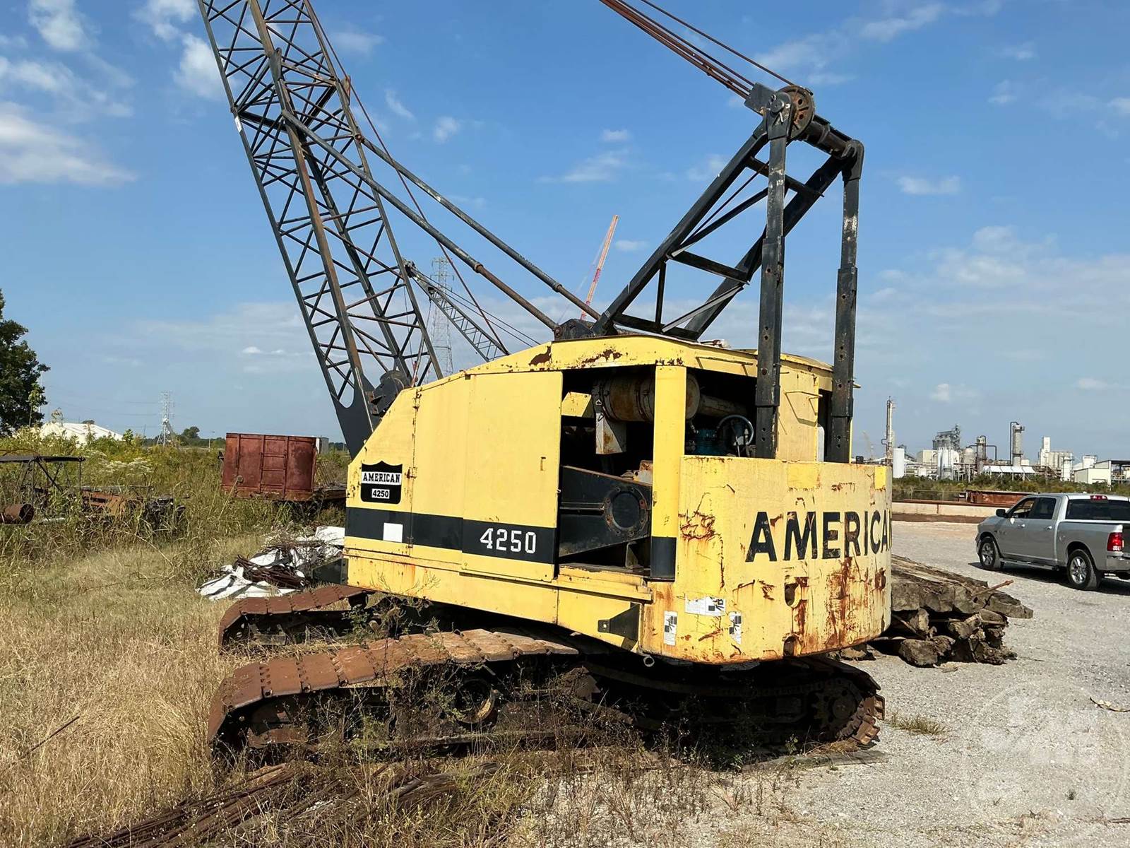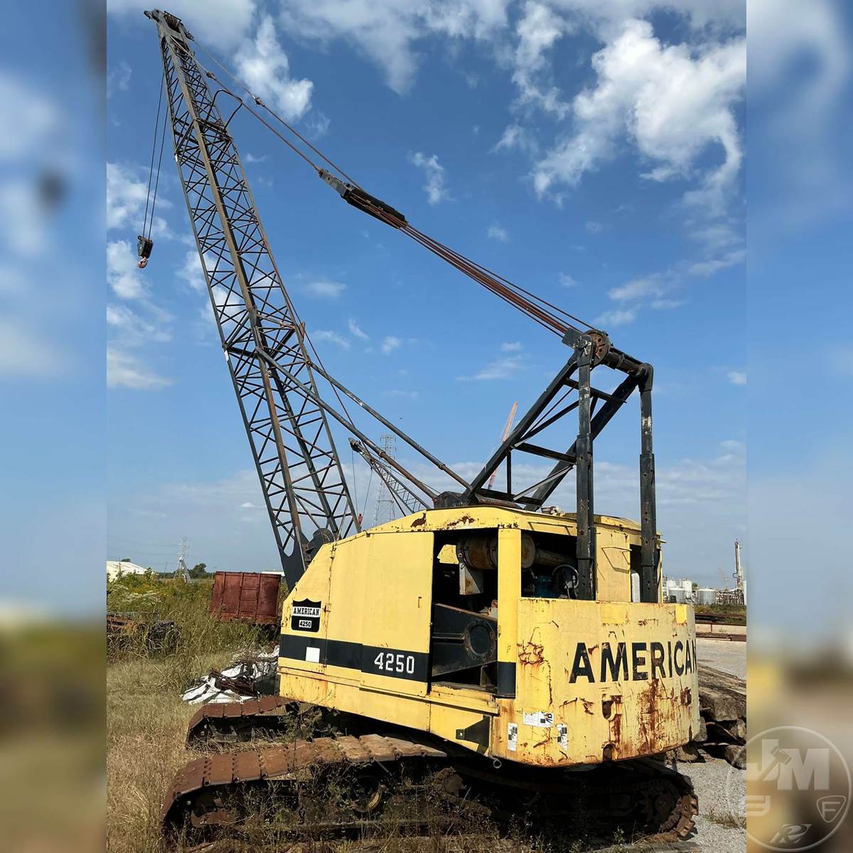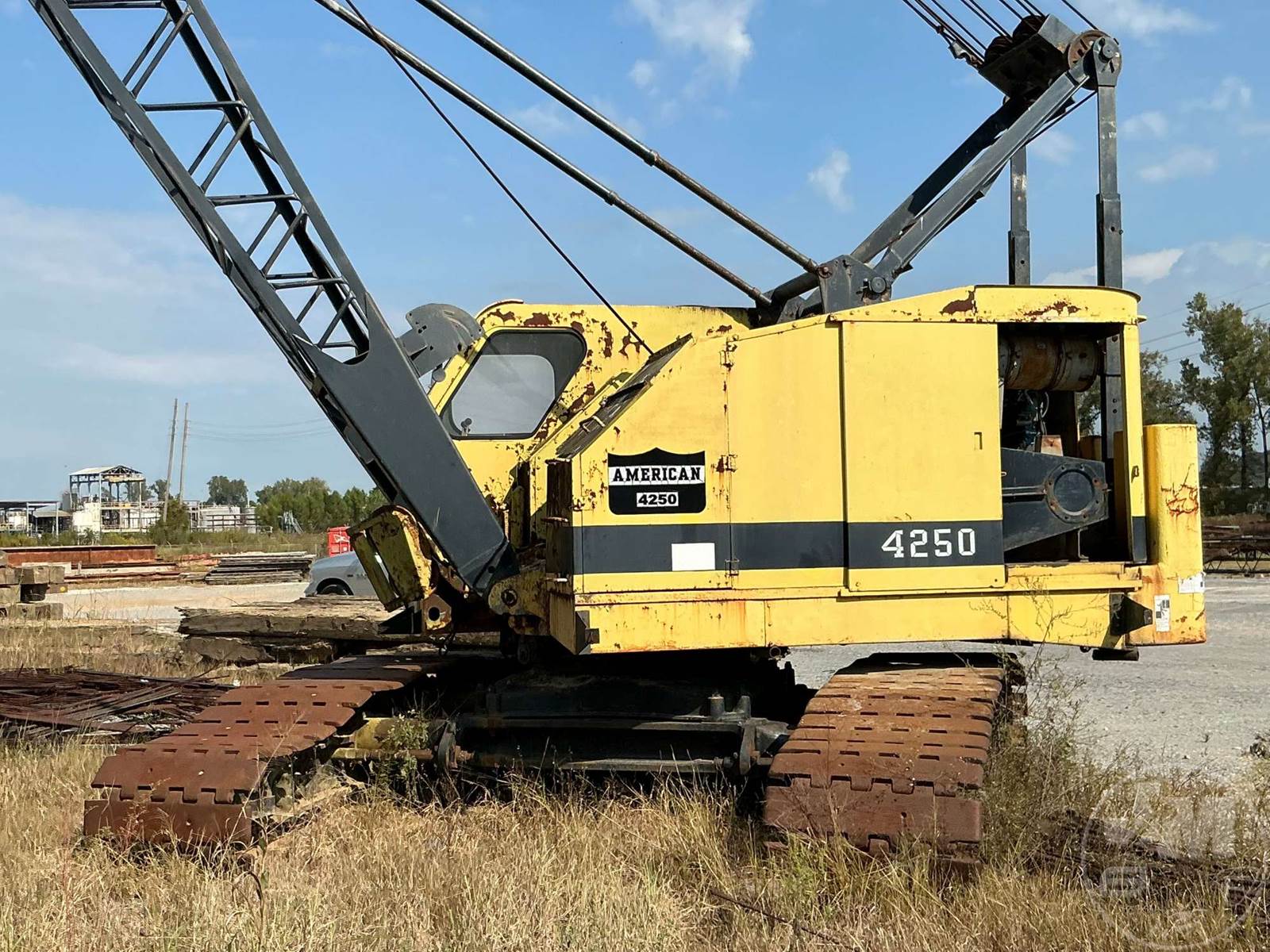 AMERICAN CRAWLER CRANE, LATTICE BOOM, 35 TON TON CAPACITY, 100' BOOM LENGTH, HEEL SECTION, BOOM TIP SECTION, AUX WINCH, THIRD DRUM, FREE FALL, NO BLOCK, CAB, GM DIESEL, 6 CYL , AIR OVER HYDRAULIC CONTROLS, EXPANDABLE TRACK SYSTEM,* CLUTCH WIL NOT ENGUAGE TO OPERATE FUNCTIONS, HOUR METER READS: CVNNATCHEZ,MS