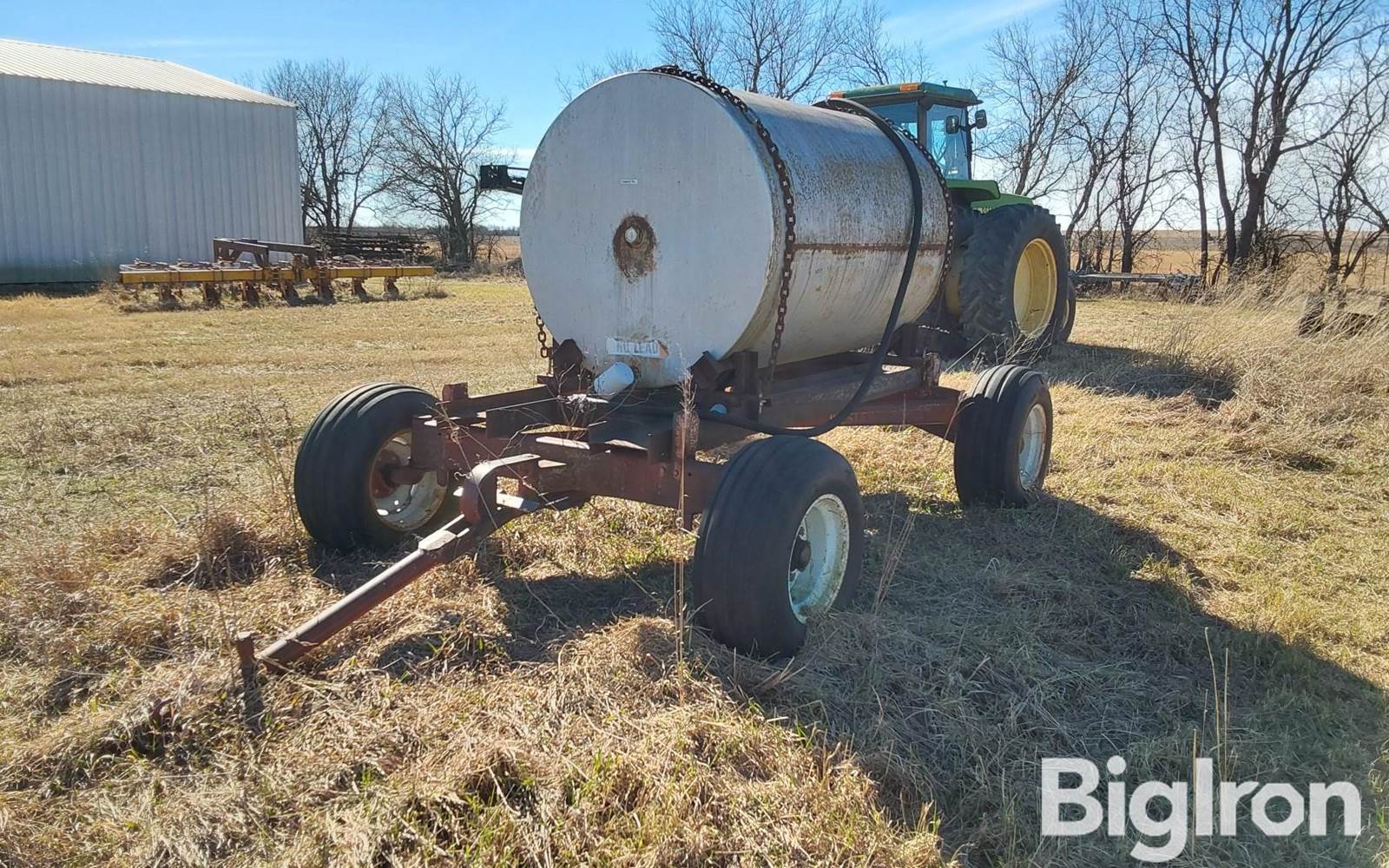 500-Gal Tank Fuel Trailer, Old fuel tank used to prime irrigation pumps, 11Lx15 tires