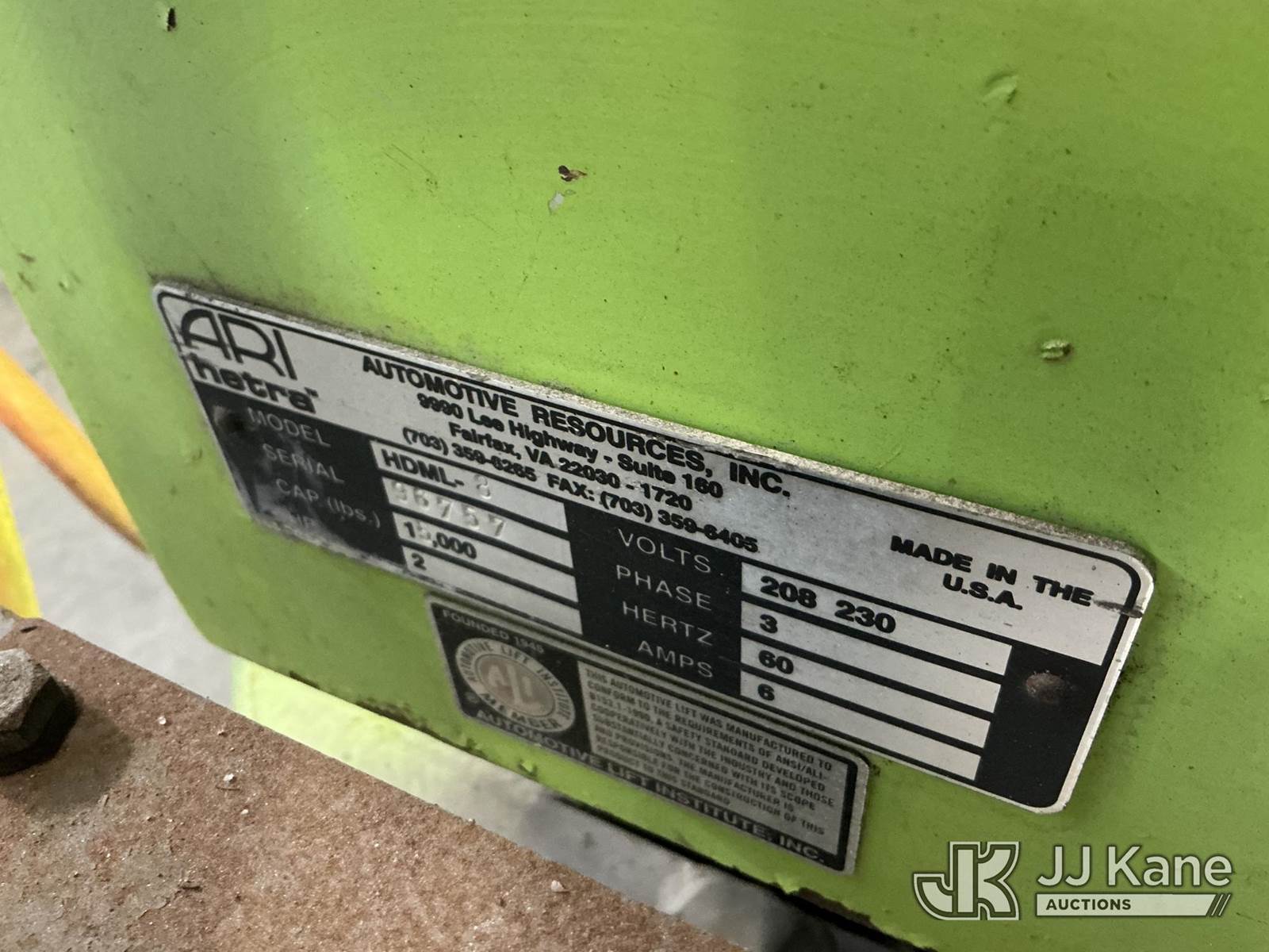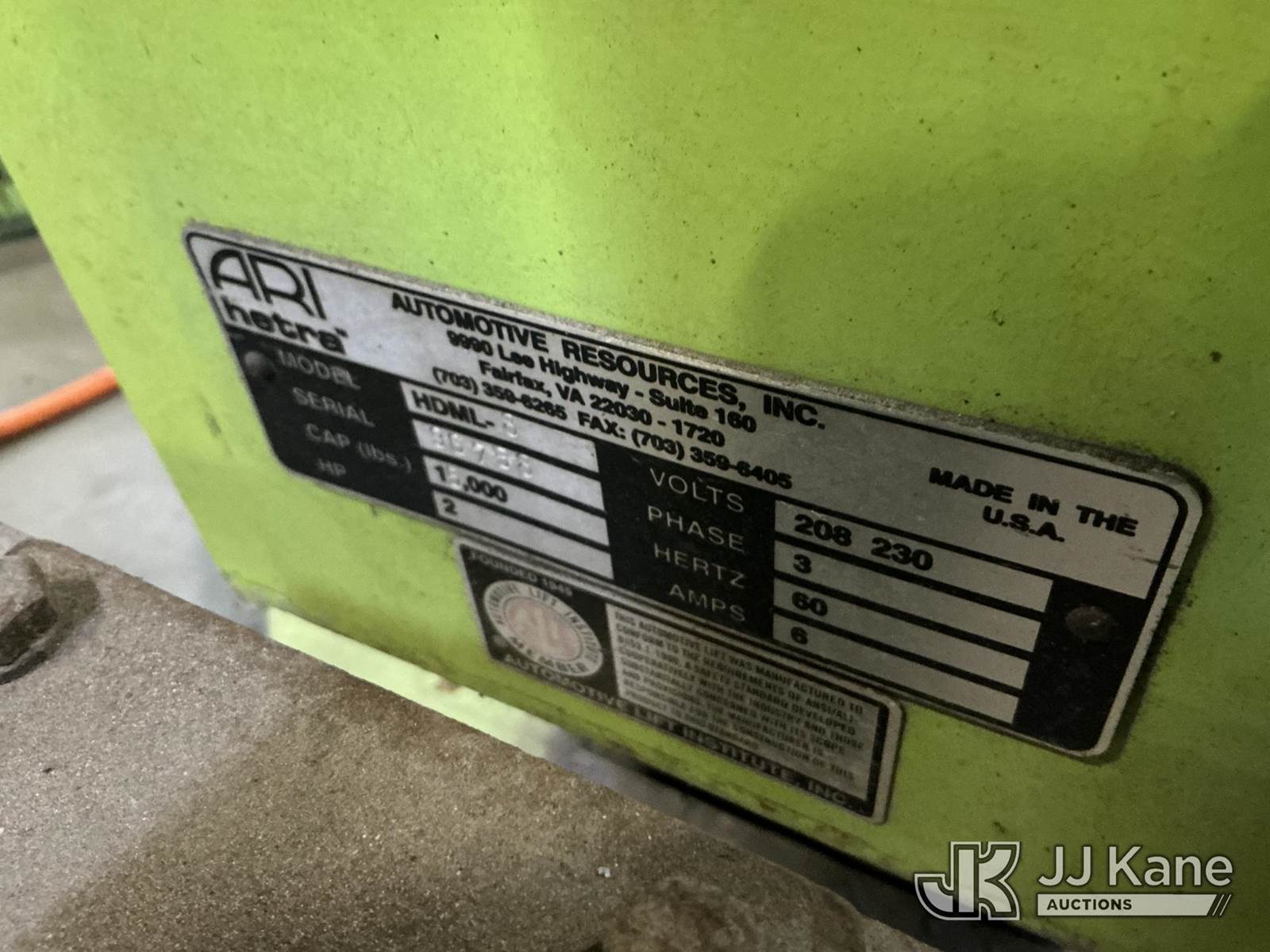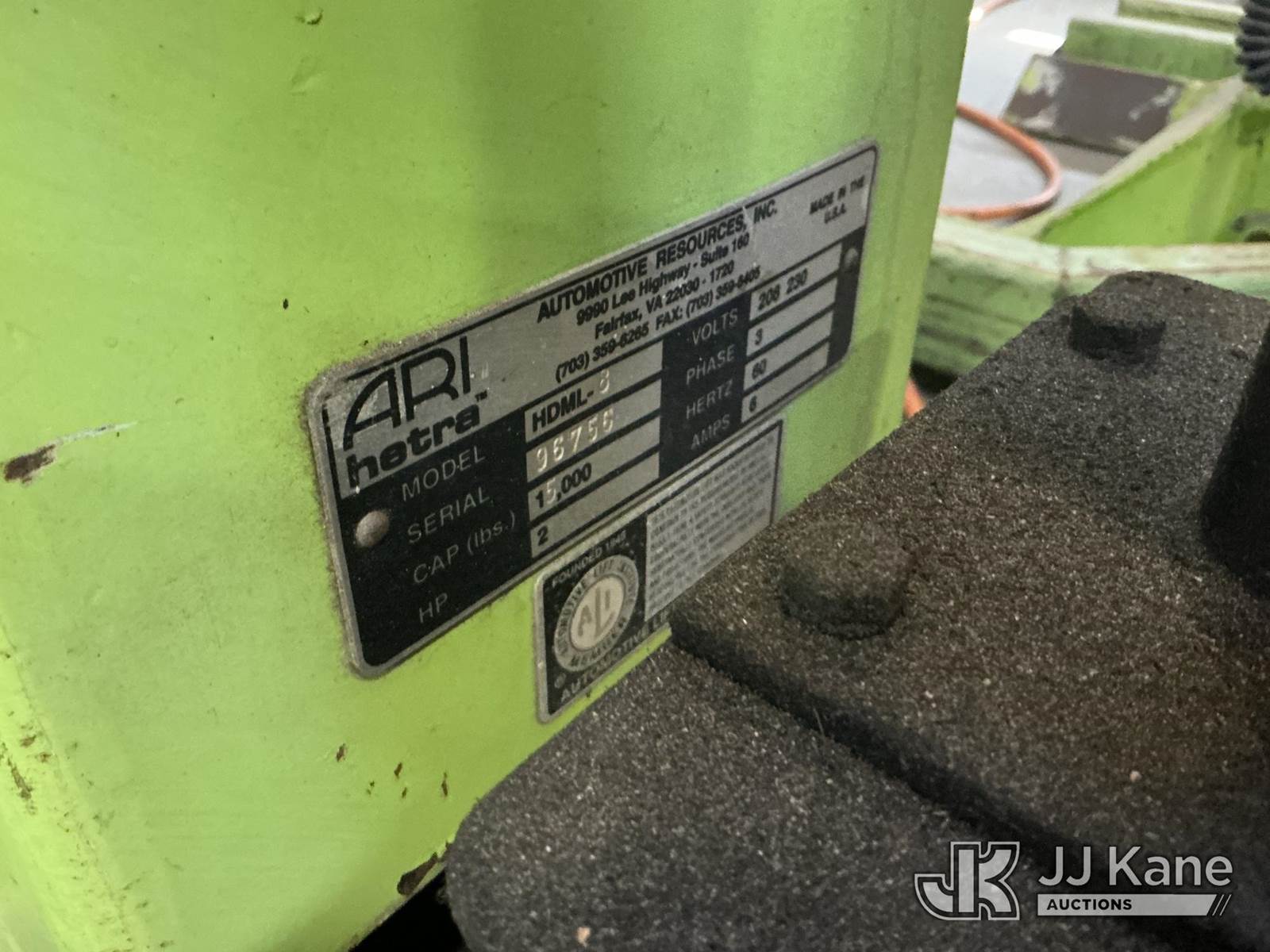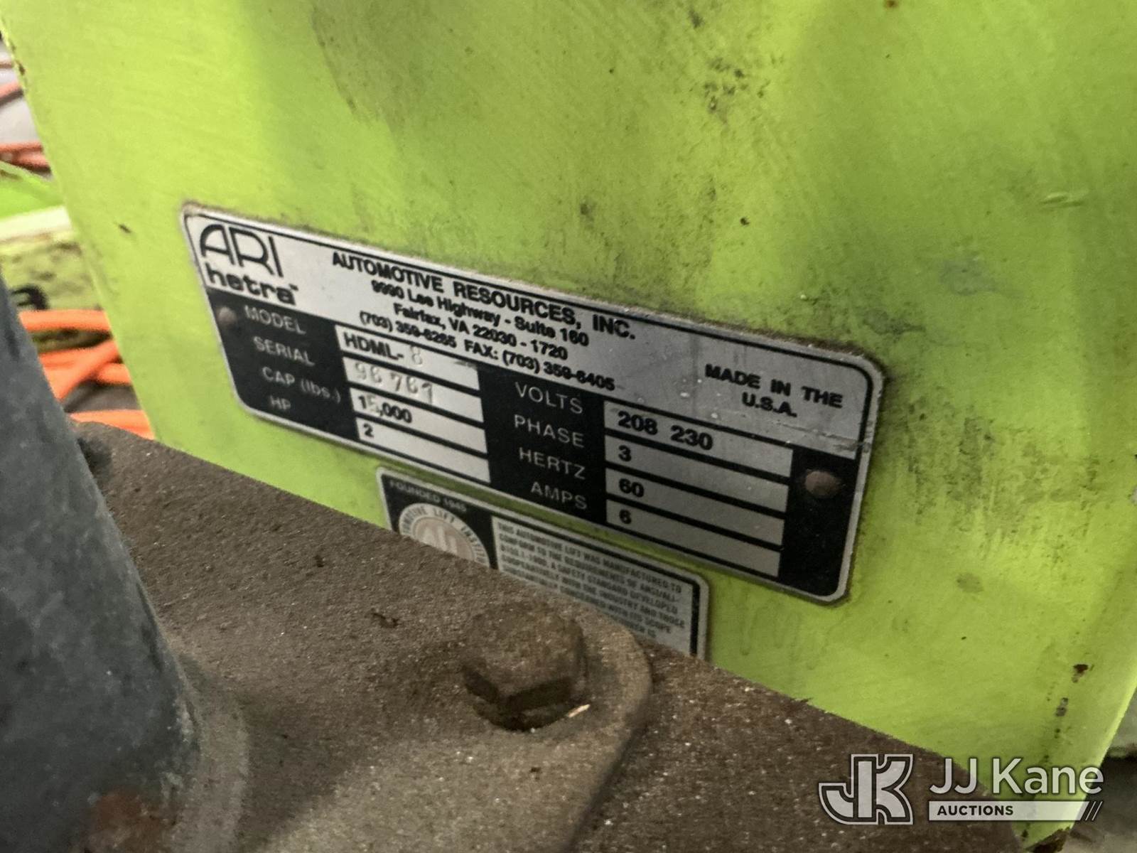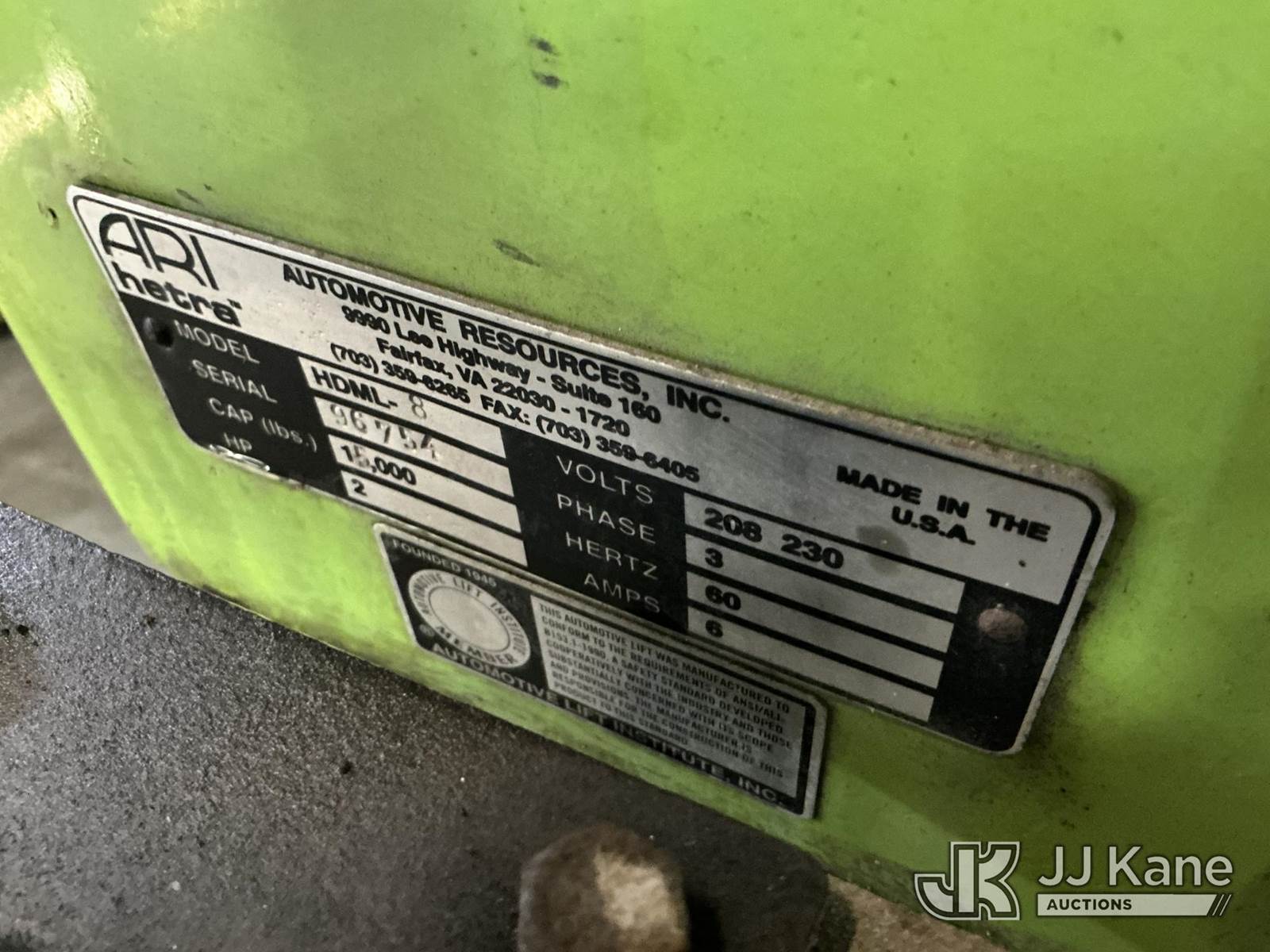 (6) ARI Hetra Model HDML 8, 15,000# Truck Lift, hardware present to run 4 of the 6 NOTE: This unit is being sold AS IS/WHERE IS via Timed Auction and is located in North Charleston, SC. For more information & removal arrangements please contact Matt Kaman @ 919-800-7863. (Buyer is responsible for removal. Assistance by consignor or JJ Kane Auctions is not assured.)