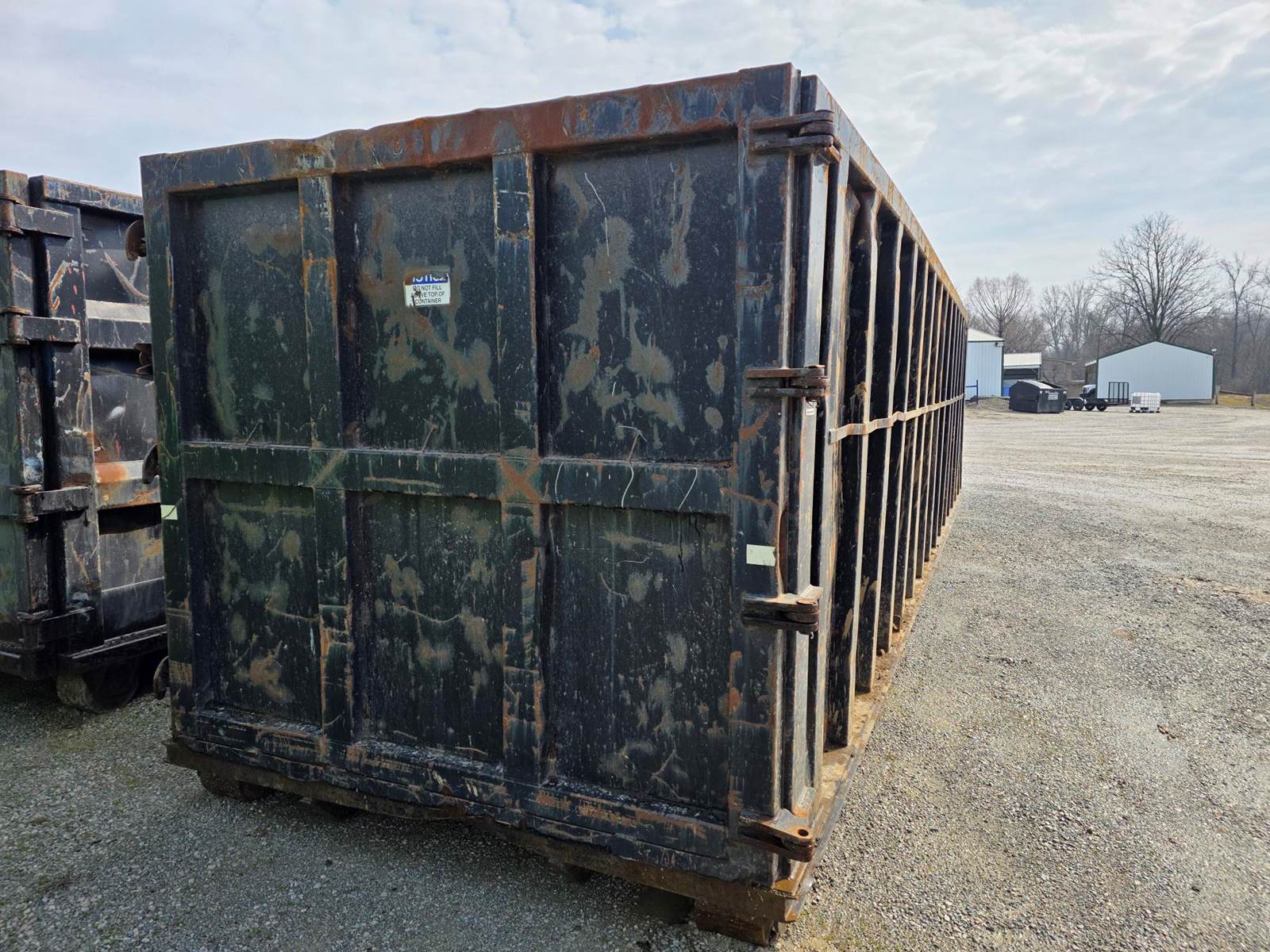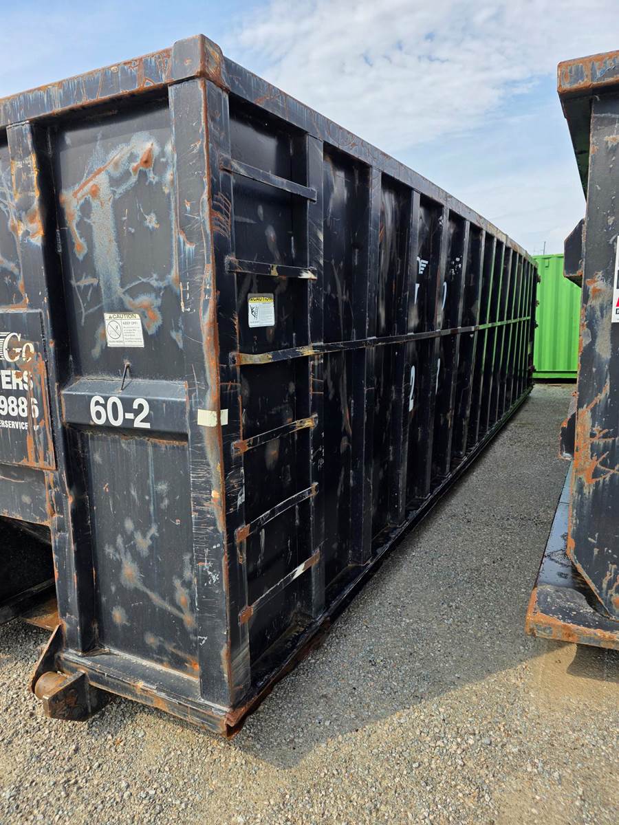 This is a high-capacity, heavy-duty 60-yard metal dumpster in solid used condition. While it shows the expected wear of a used unit, it is structurally sound with plenty of service life remaining. Perfect for high-volume scrap metal, large-scale construction demolition, or industrial waste management.