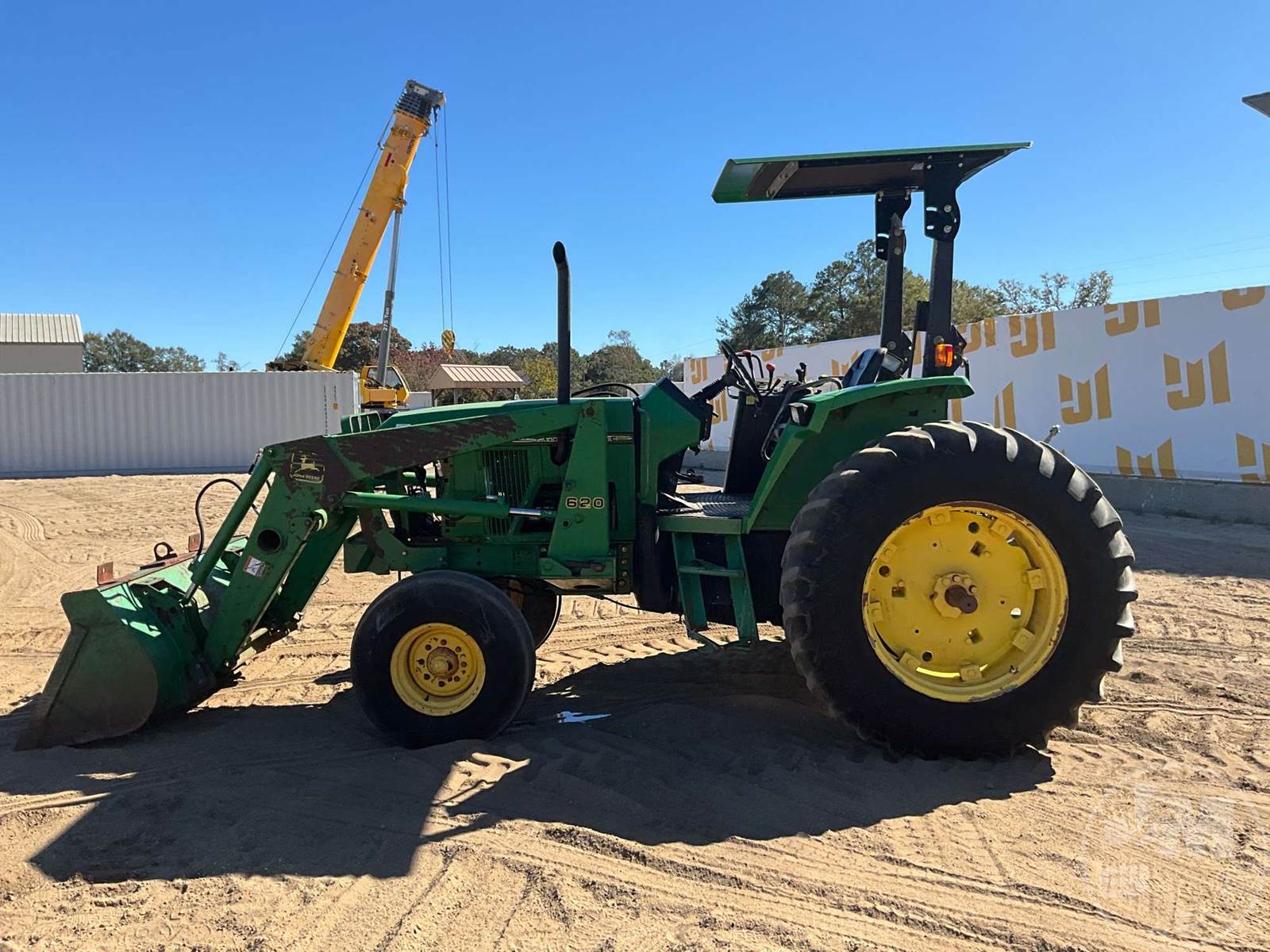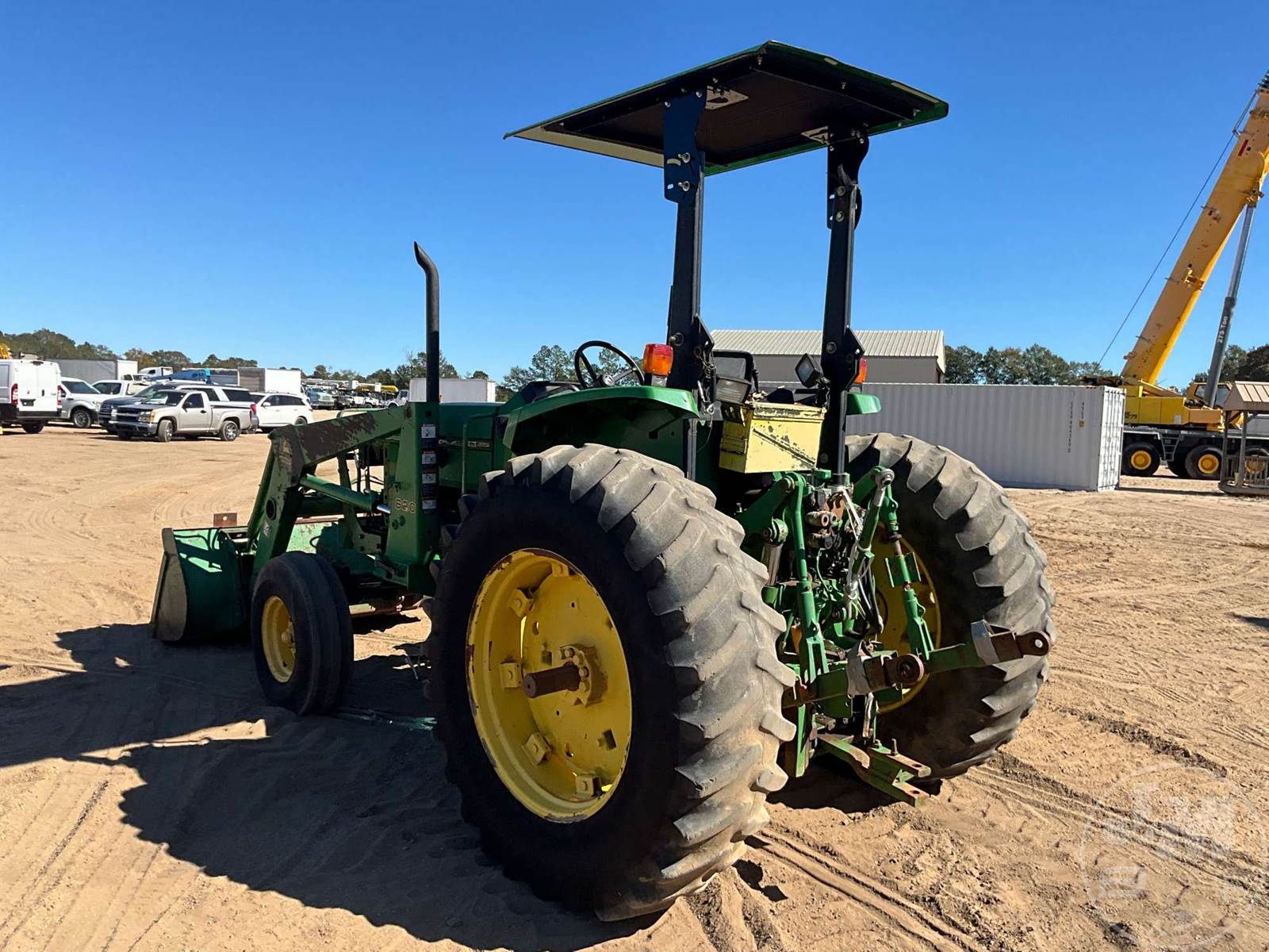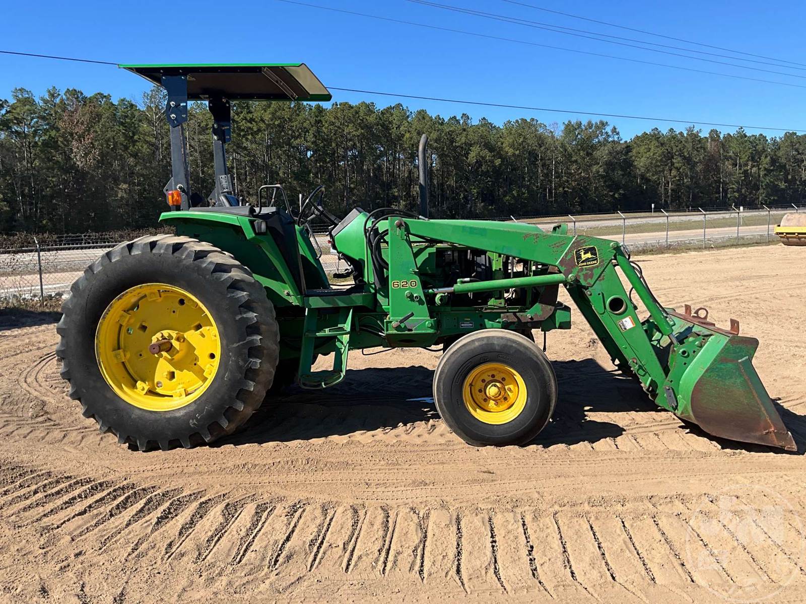 JOHN DEERE 4X4 TRACTOR W/ LOADER, Â CANOPY, 4 CYL, DIESEL ENGINE, 90 HP, 3 PT HITCH, DRAWBAR, JOHN DEERE, 72", GP BKT, 1000 RPM PTO, DUAL REMOTES, 10.00-16 FRONT TIRES, HOUR METER READS: 4491