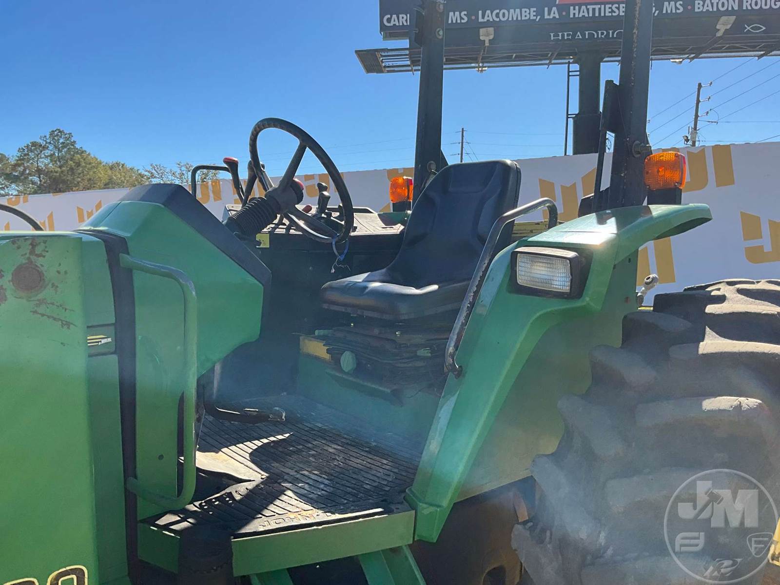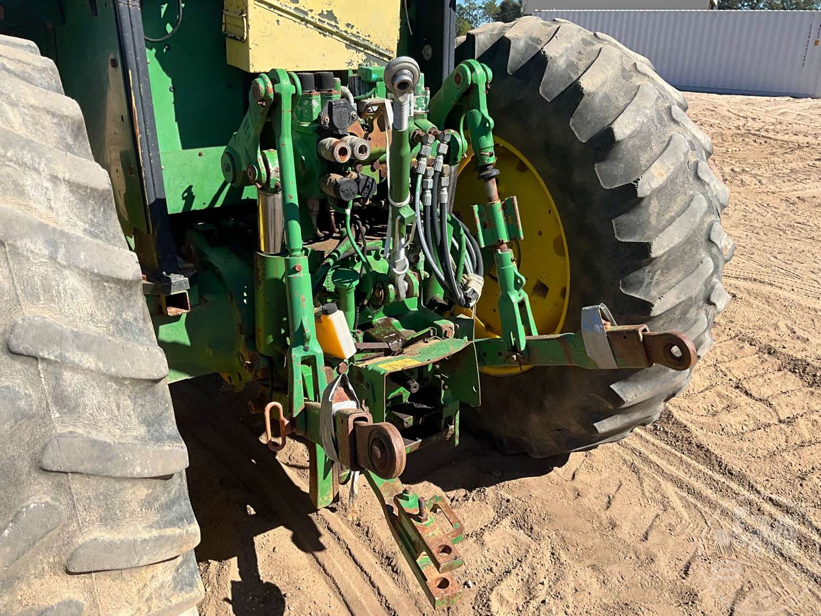 JOHN DEERE TRACTOR, CAB, A/C, RADIO, DIESEL ENGINE, 3 PT HITCH, DRAWBAR, 540 RPM PTO, DUAL REMOTES, 16.9-30 REAR TIRES, 11L-15-8 FRONT TIRES