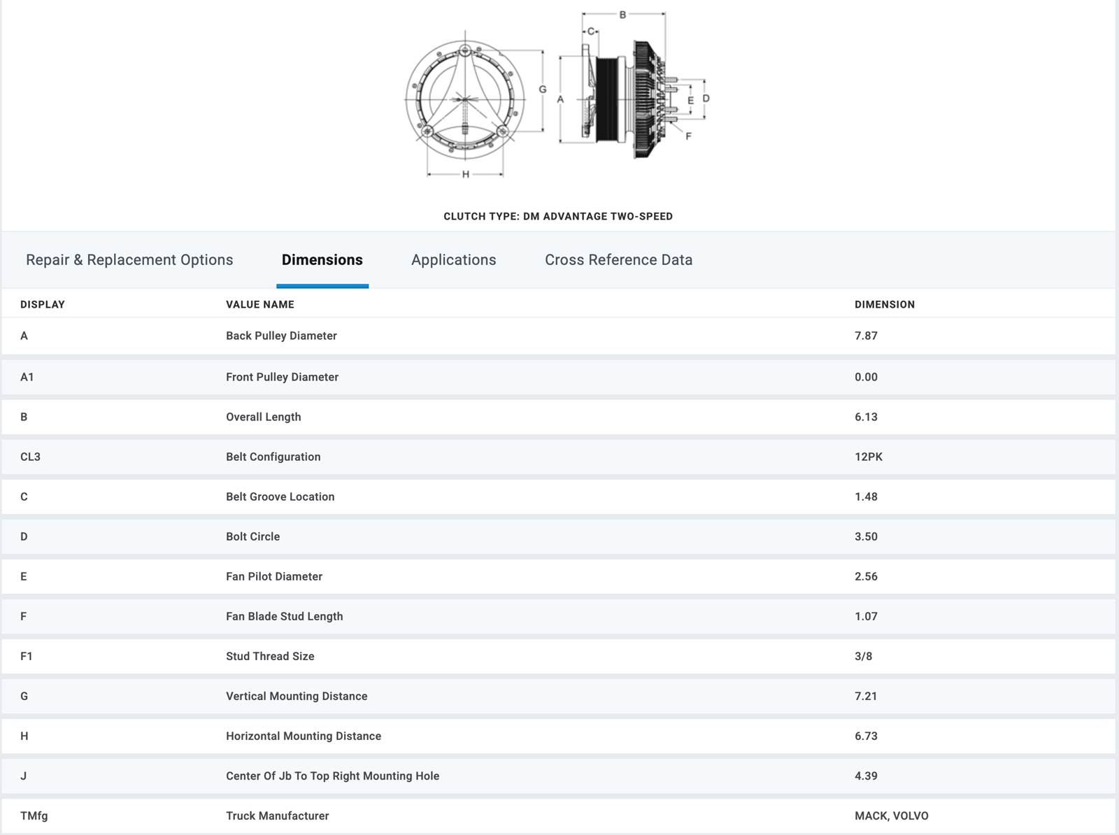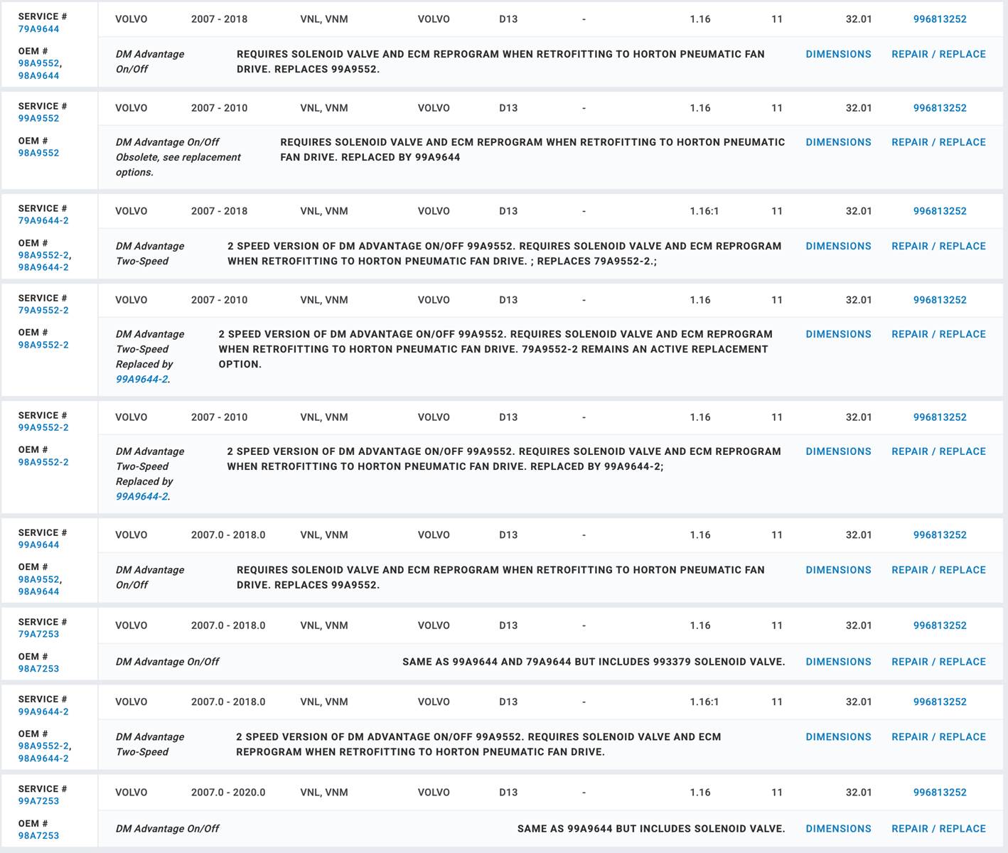 (GOOD USED/ TESTED) Horton Fan Clutch for Mack MP8 & Volvo D13 Diesel Engine, for sale!!! Part #: 98A9644-2; Service #: 99A7253, 79A9644-2, 79A7253, 99A9644-2, 79A9644, 99A9644, 99A3552, 99A7253; OEM #: 98A7253, 98A9644-2, 98A9644, 98A9552, 98A9644, 98A9552-2; BorgWarner Part #: 21210845, Mack Part #: 21596045, 40MH4103M, 22113077, 21192240, 20883819, Volvo Part #: 20883819, 21596045, 22113077,85139329; TRUCK APPLICATION: Mack (2007-2020) CXU, CXU613, CX613, ANTHEM; Volvo (2007-2018) VNL, VNM; Stock #: FC2846 (TAKE A LOOK AT CHART IN PICTURES TO VERIFY IF THIS FAN CLUTCH WORKS FOR YOU!!!!)