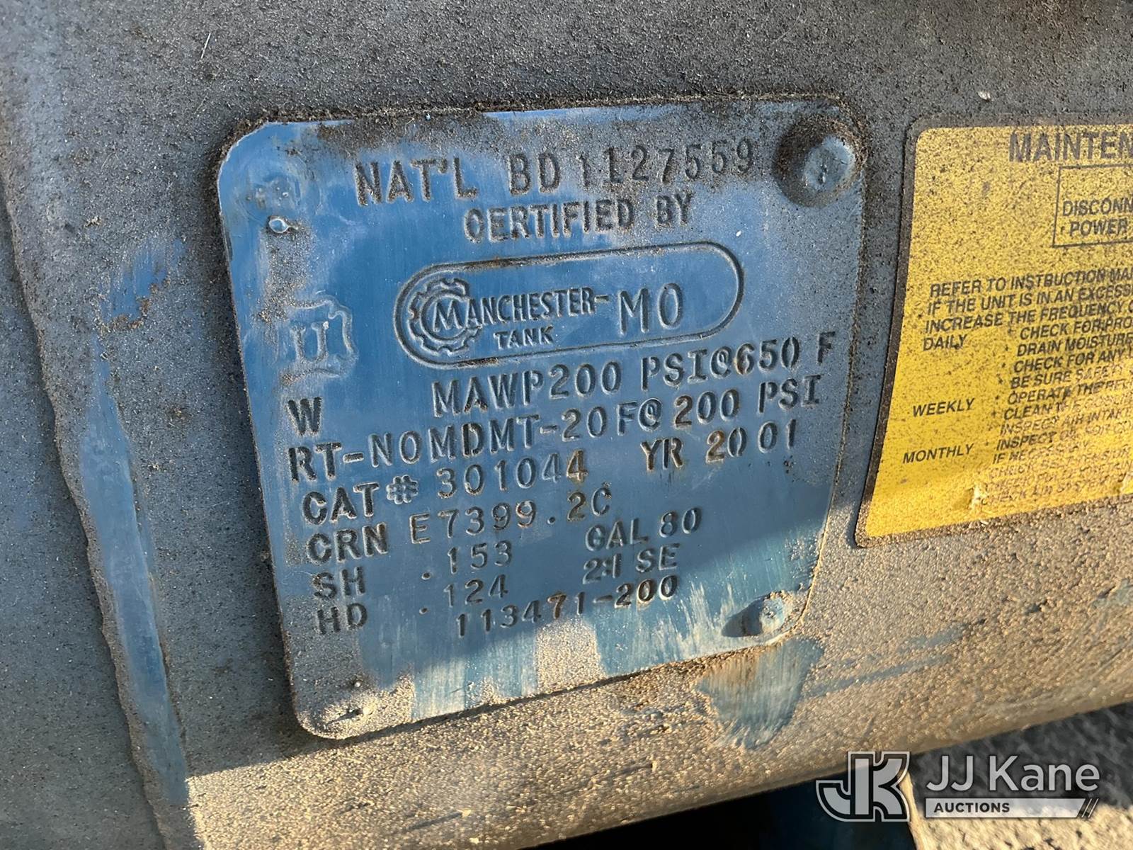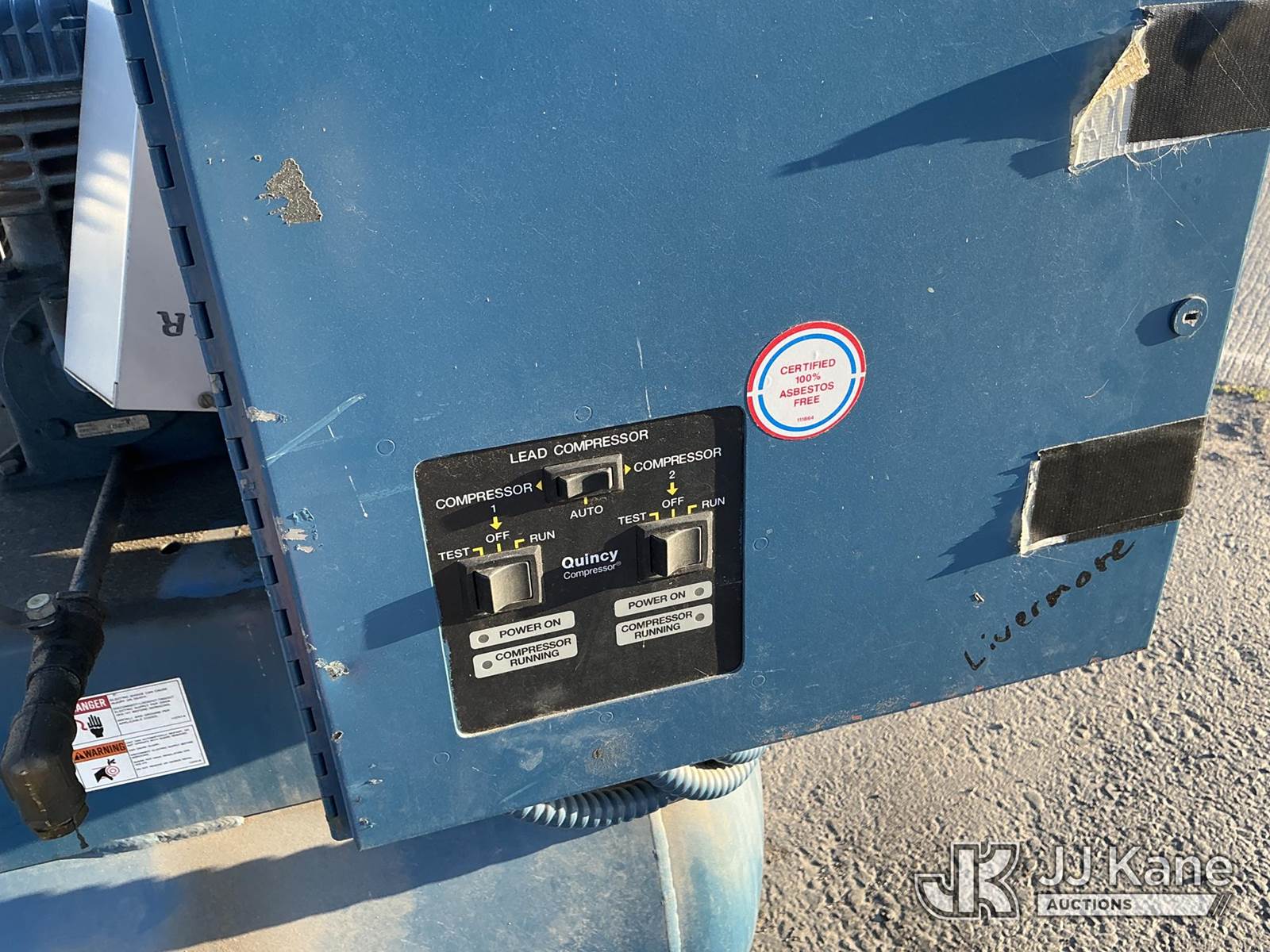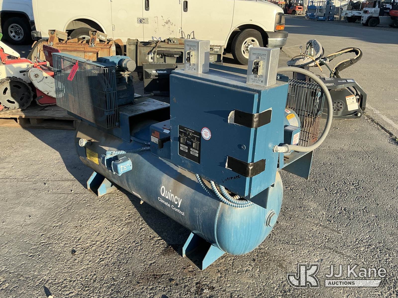80gal Air Compressor (Used, Conditions Unknown ) NOTE: This unit is being sold AS IS/WHERE IS via Timed Auction and is located in Dixon, CA. Inspection & preview days for this unit are the 2 business days prior to the first day of items closing for this auction, item is located at 8668 Sparling Ln Dixon, CA 95620 and hours of operations are 8a-4p. For pre-sale questions, please contact JJ Kane Staff at (707) 678-8060 (dixon@jjkane.com). Dealer License Number 45696. (Buyer is responsible for removal. Assistance by consignor or JJ Kane Auctions is not assured.)