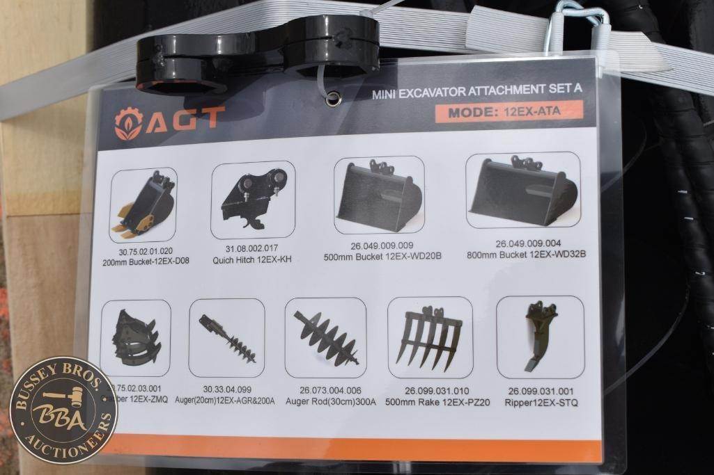 AGT Mini Skid Steer Attachment Set Mini Skid Steer Mount, quick coupler, ripper, rake, grapple, auger with rods, buckets, 12EX-ATA, SN#12EX-ATA26012201B, NEW/UNUSED