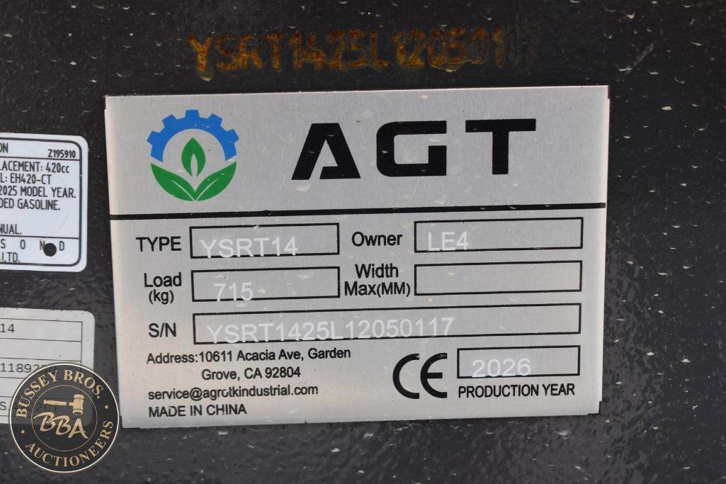 AGT Mini Skid Steer Gas engine 420cc, aux hydraulics, toolbox, YSRT14, SN#YSRT1425L12050117, NEW/UNUSED
