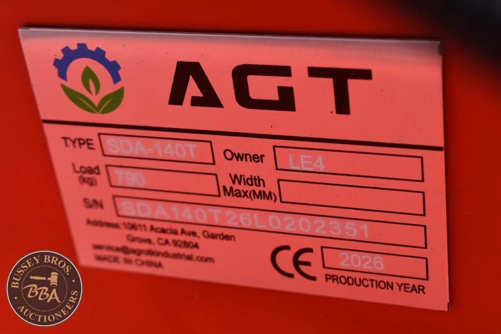 AGT Mini Skid Steer Aux Hydraulics, Gas Engine, Toolbox, SDA-140T, SN#SDA140T26L0202351, NEW/UNUSED
