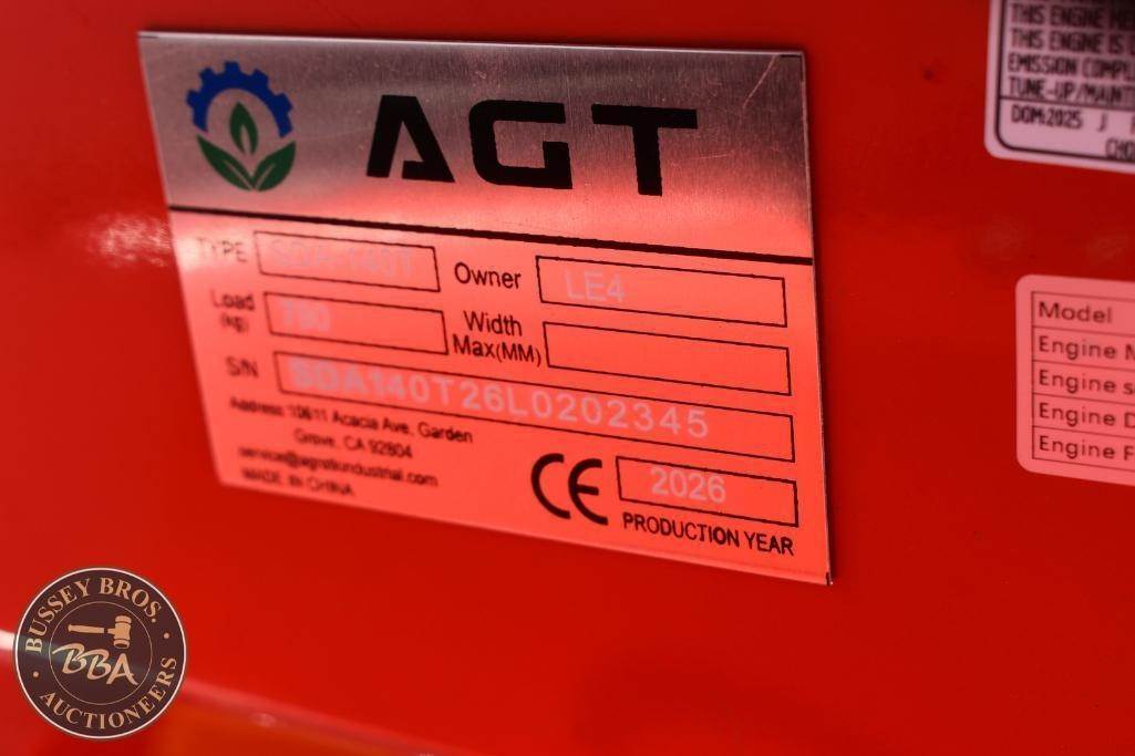 AGT Mini Skid Steer Aux Hydraulics, Gas Engine, Toolbox, SDA-140T, SN#SDA140T26L0202345, NEW/UNUSED
