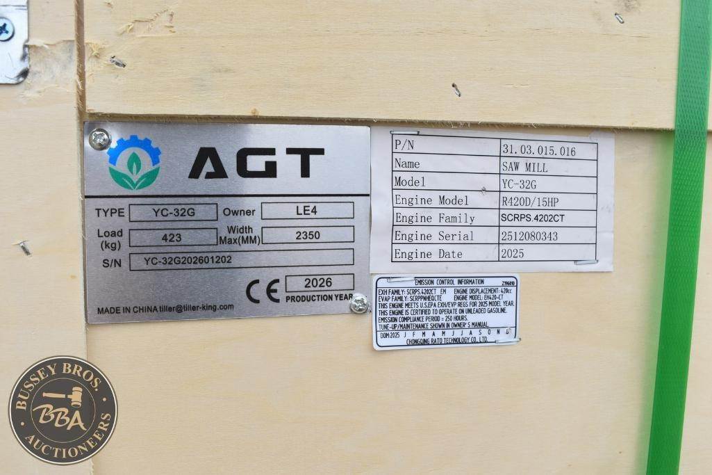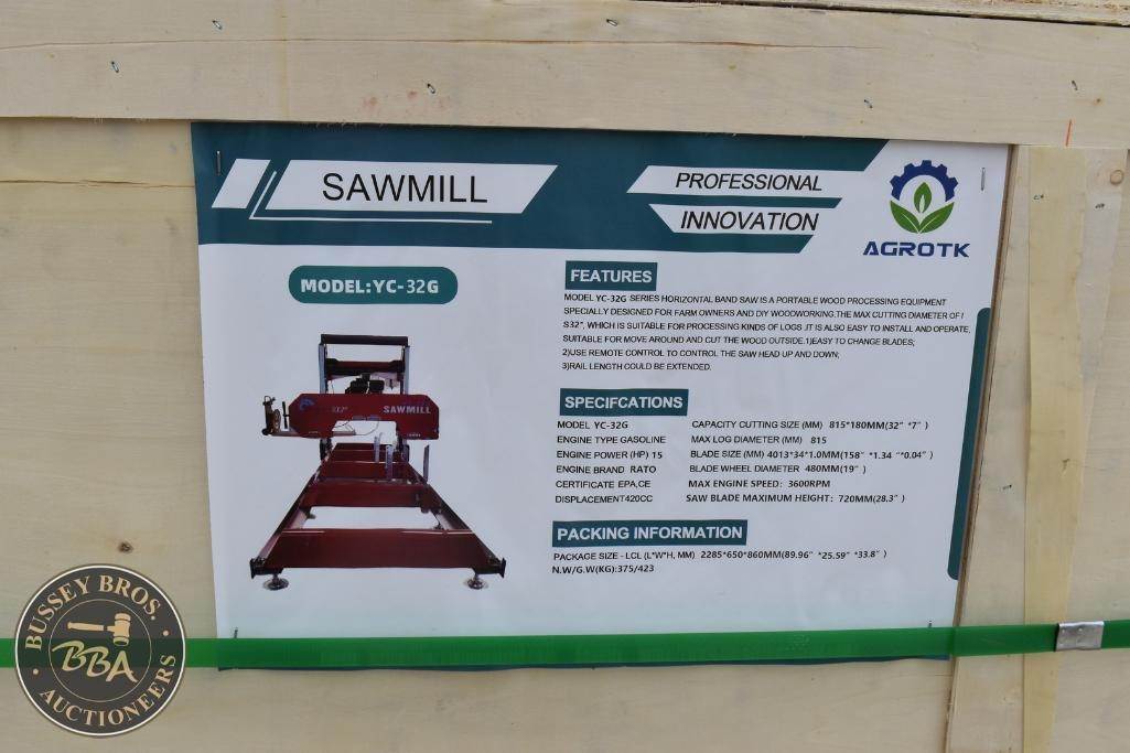 AGROTK Portable Sawmill Gas engine, 15hp, YC-32G, SN#YC-32G202601202, NEW/UNUSED