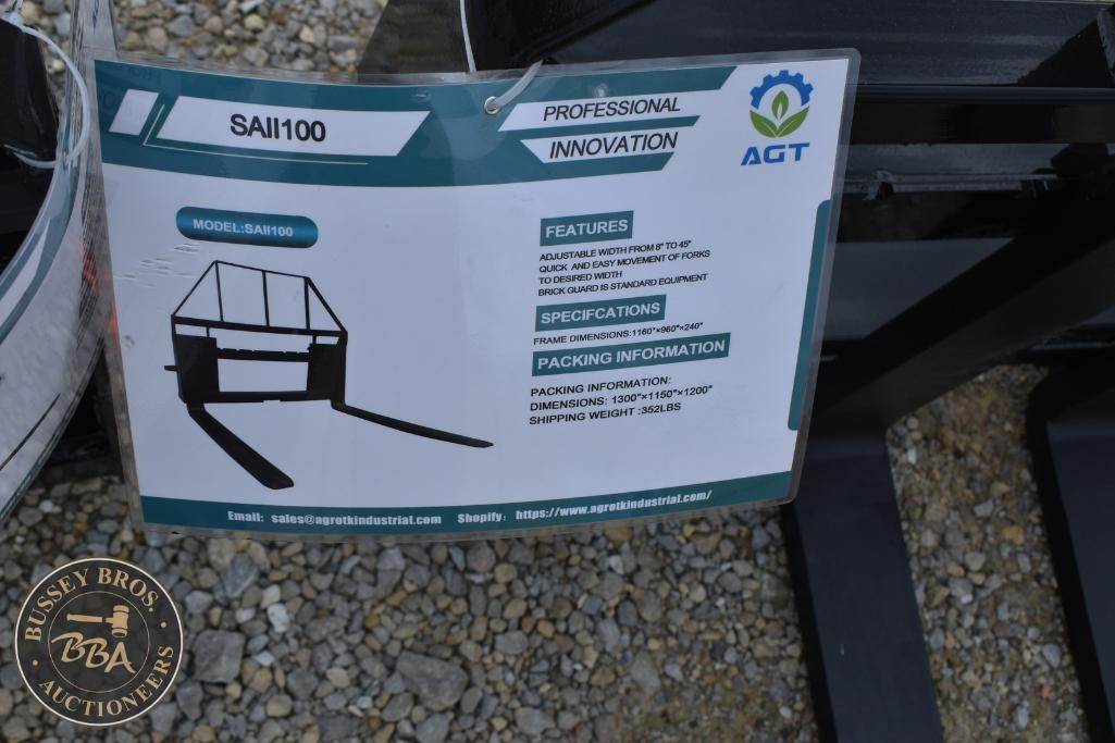 AGT Skid Steer Adjustable Fork Attachment Skid Steer Mount, 8in to 45in, SAII100, SN#SA26012204B, NEW/UNUSED