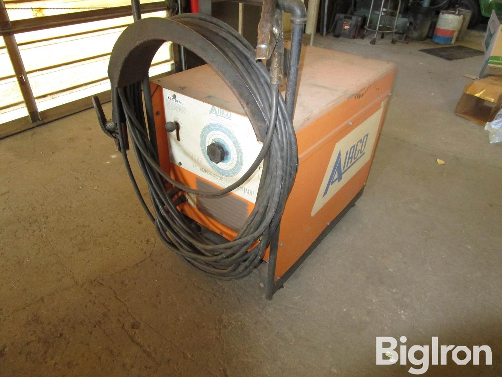 Airco Bumblebee HD AC/DC Arc Welder, 250 Amp, 208/230/460V, Capable of Stick Welding and DC Scratch-Start TIG, 27' Ground Lead and 48' Wand Lead, On Steel Wheel Cart, SN: HK240300