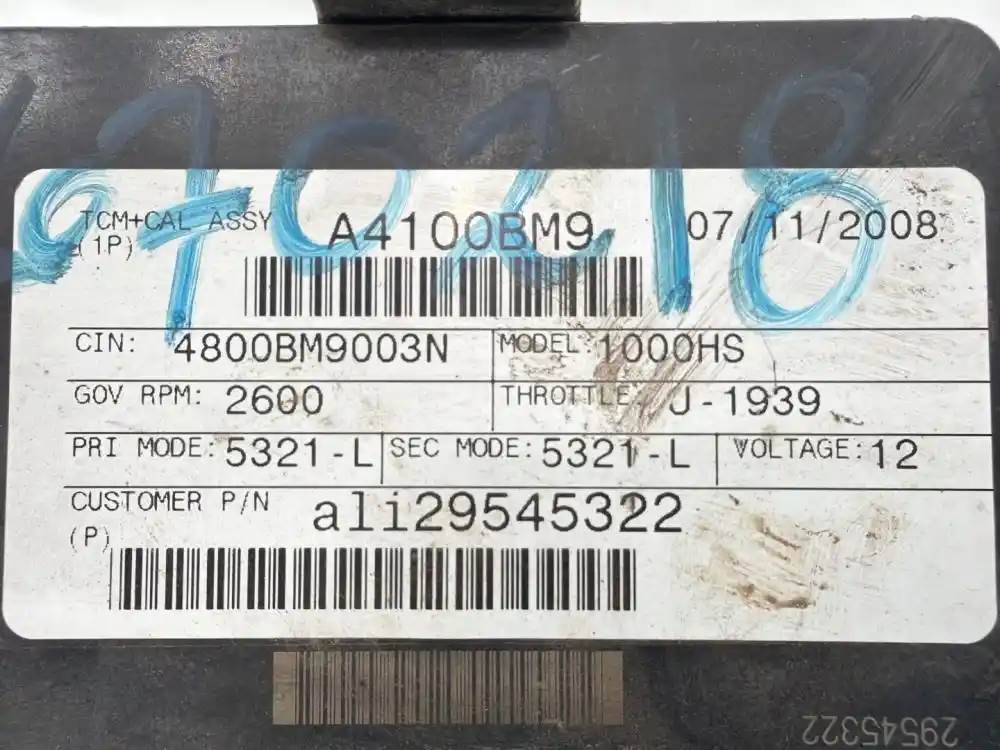 (Used) 2008 Allison 1000HS , TRANSMISSION ECM- Part Number: 29545322, Serial Number: BK5322N18115EH9E, 12 Volts A4100BM9, CIN: 4800BM9003N, GOV RPM: 2600, THROTTLE: J--1939, PRI MODE: 5321-L, SEC MODE: 5321-L, Customer P/N: ali29545322, E11, 022849, 10 R 022849, Supplier Number: ATA5101, MODEL: A41, Plug Pins: 80 Pins Plug Rectangular, Reference images for condition. For more information about this item, give us a call. We ship Worldwide! (CRG HEAVY TRUCK PARTS) 929 W PULASKI HWY, ELKTON, MD 21921, Serial#: BK5322N18115EH9E