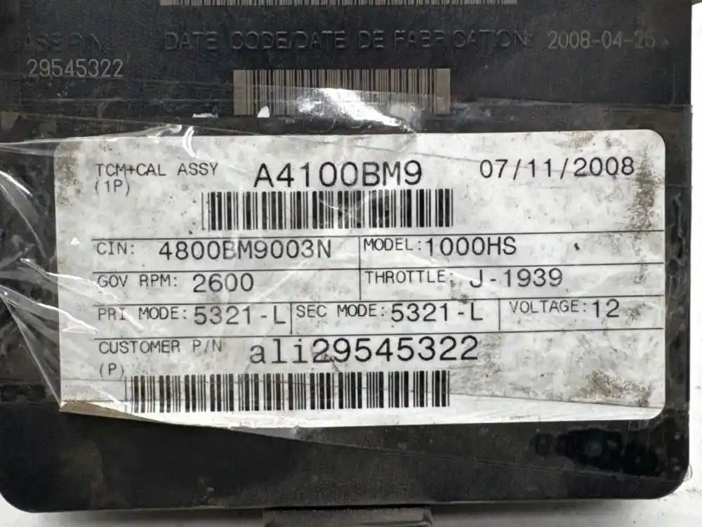 (Used)Allison 2009 1000HS (AT), TRANSMISSION ECM- Part Number: 29545322, Serial Number: BK5322N18115EHF2, A4100BM9, CIN: 4800BM9003N, GOV RPM: 2600, THROTTLE: J-1939, 12 Volts, A41, E11, 022849, 10 R 022849, Supplier Part Number: ATA4103, Base Pin Number: 29545322, Plug Pins: 80 Pins Plug Rectangular, Reference images for condition. For more information about this item, give us a call. We ship Worldwide! (CRG HEAVY TRUCK PARTS) 929 W PULASKI HWY, ELKTON, MD 21921, Serial#: BK5322N18115EHF7, Engine Make: Cummins, Engine Model: ISB, Casting#: 29545322
