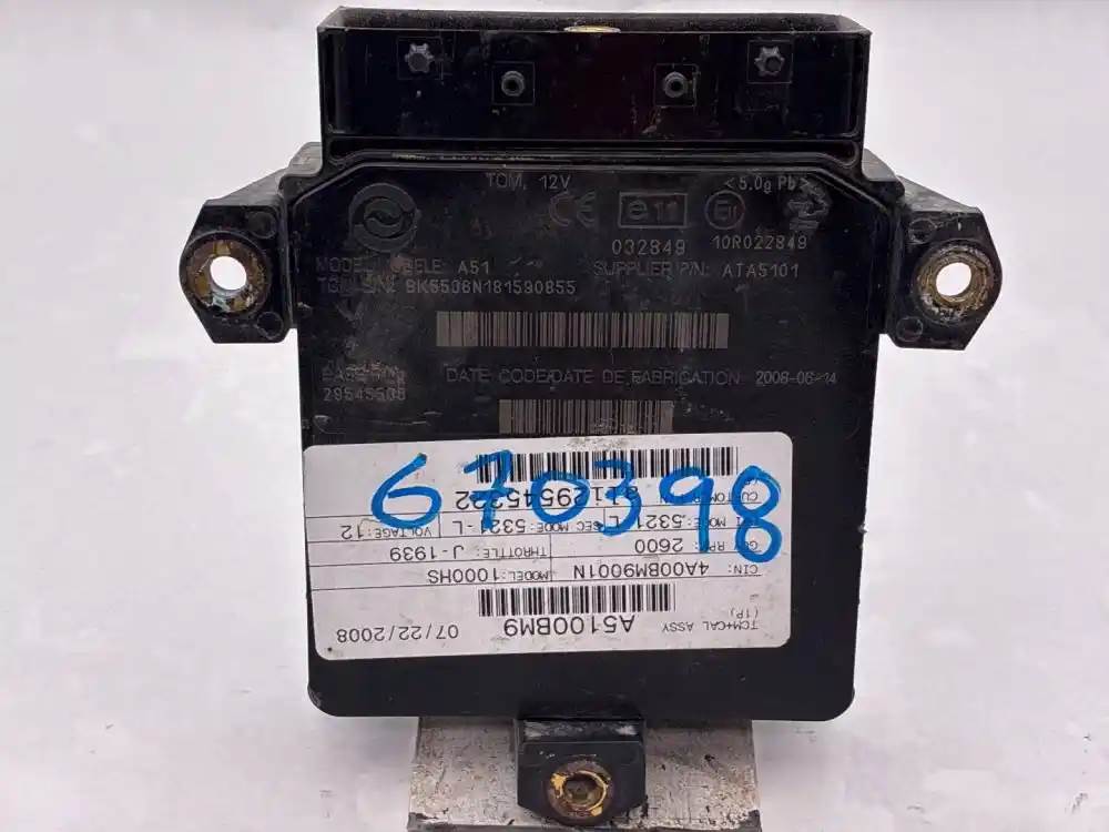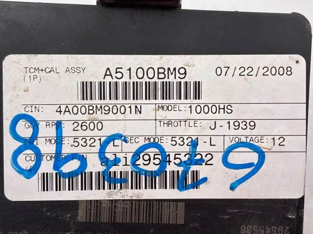 (Used) 2009 Allison 1000HS , TRANSMISSION ECM- Part Number: 29545536, Serial Number: BK5536N181590855, A5100BM9, CIN: 4A00BM9001N, GOV RPM: 2600, THROTTLE: J-1939, PRI MODE: 5321-L, SEC MODE: 5321-L, Customer P/N: ali29545322, 12V, E11, 032849, 10R022849, Supplier Number: ATA5101, MODEL: A51, Plug Pins: 80 Pins Plug Rectangular, Reference images for condition. For more information about this item, give us a call. We ship Worldwide! (CRG HEAVY TRUCK PARTS) 929 W PULASKI HWY, ELKTON, MD 21921, Serial#: BK5536N181590855, Engine Make: Cummins, Engine Model: ISB, Casting#: 29545536