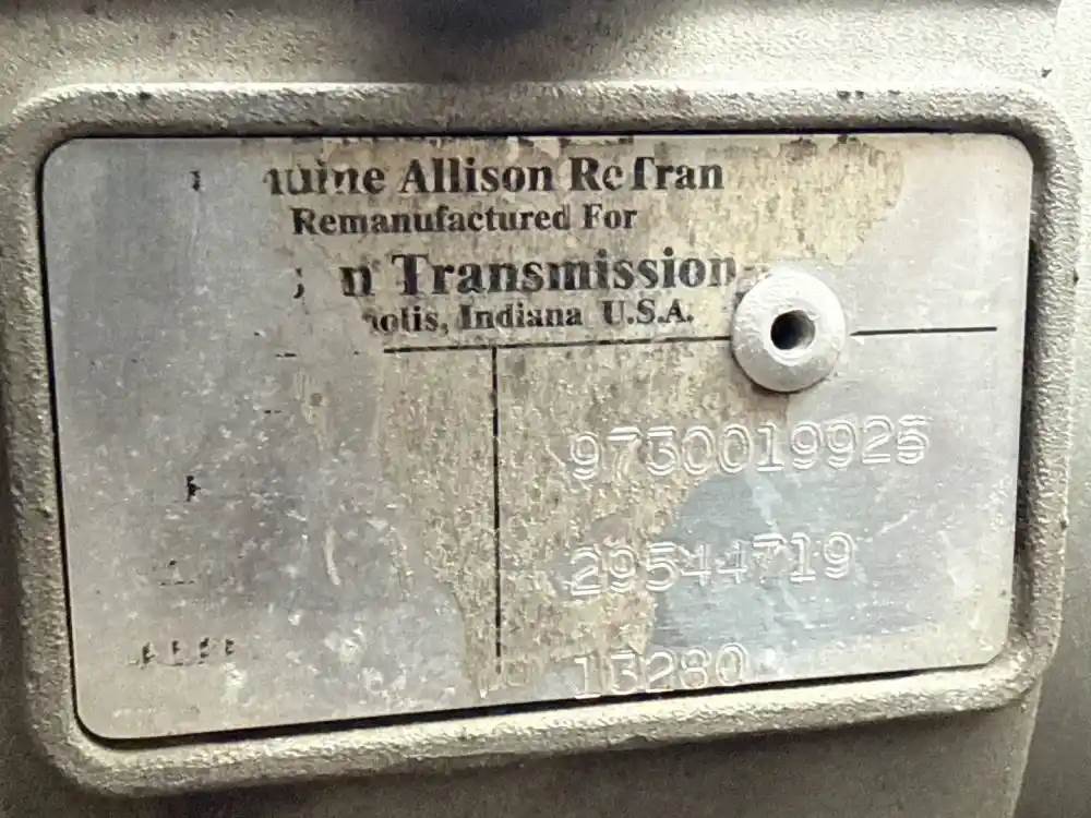 (Used) Allison (AT), TRANSMISSION ASSEMBLY- Model: 1000, Serial Number: 9750019925, Part Number: 29544719 Reference images for condition For more information about this item, give us a call. We ship Worldwide! (CRG HEAVY TRUCK PARTS) 929 W PULASKI HWY ELKTON, MD 21921, Serial#: 9750019925