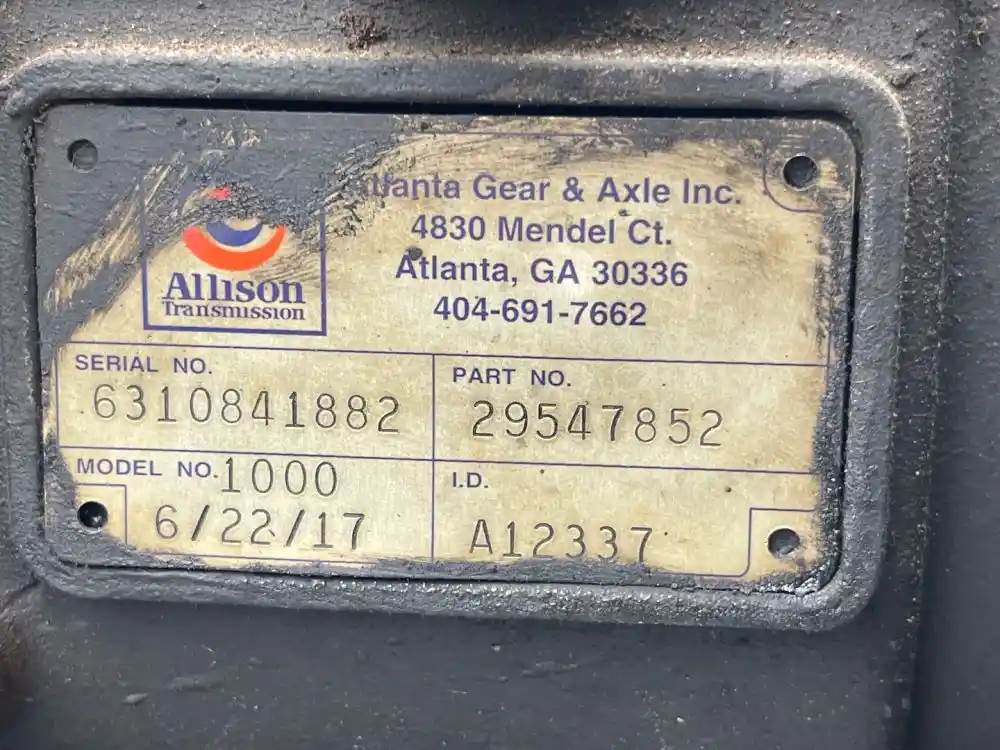 (Used) 2008 Allison (AT), TRANSMISSION ASSEMBLY- Model: 1000, Serial Number: 6310841882, Part Number: 29547852, Engine: Cummins ISB, Reference images for condition, For more information about this item, give us a call. We ship worldwide! (CRG HEAVY TRUCK PARTS) 929 W PULASKI HWY, ELKTON, MD 21921, Serial#: 6320841882, Engine Make: Cummins, Engine Model: ISB, Casting#: 6310841882