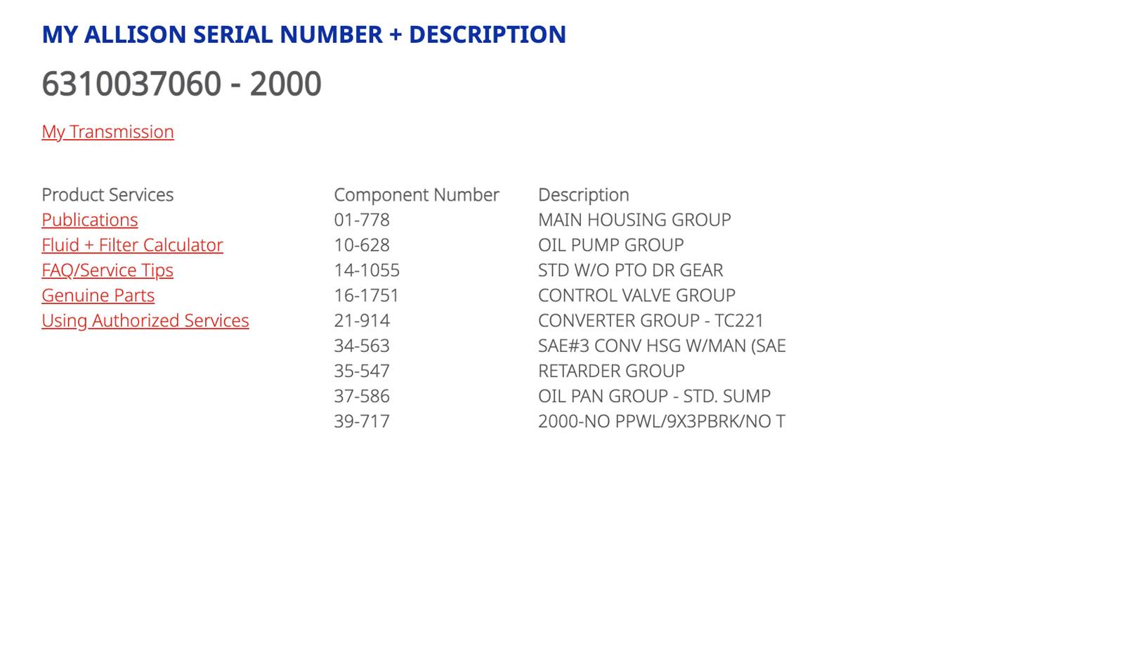 Allison 2000 Transmission , AUTOMATIC, TID 001, TID#1, 2000 SERIES