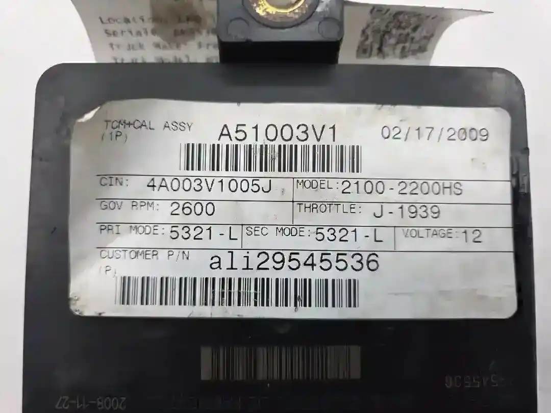 (Used) 2011 Allison (AT), TRANSMISSION ECM- ECM Model: A51, Part Number: 29545536, Serial Number: BK5536N18330012B , 12 Volts A51003V1, CIN: 4A003V1005J, Transmission Model: 2200HS, Plug Pins: 80 Pins Plug Rectangular, Reference images for condition. For more information about this item, give us a call. We ship Worldwide! (CRG HEAVY TRUCK PARTS) 929 W PULASKI HWY, ELKTON, MD 21921, Serial#: BK5536N18330012B, Engine Make: Cummins, Engine Model: ISB, Casting#: A51003V1
