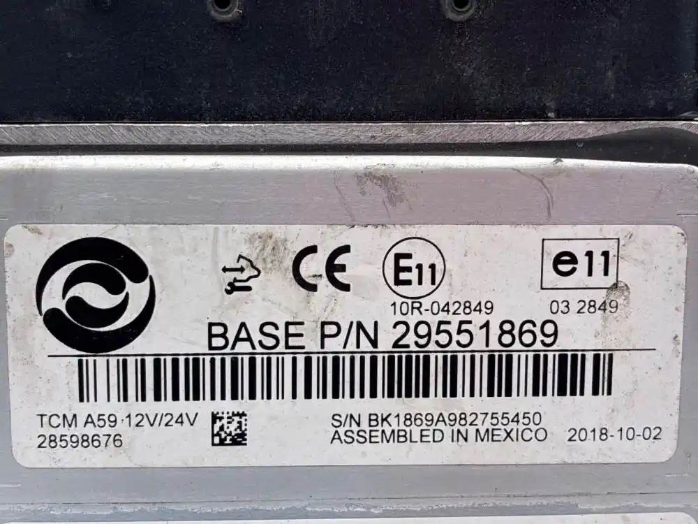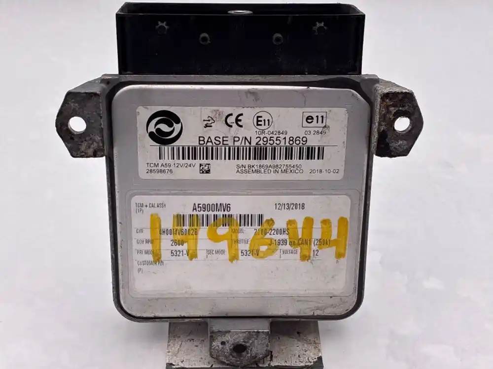 (Used) 2010 Allison 2200HS, TRANSMISSION ECM- Part Number: 29551869, Serial Number: BK1869A982755450, TCM Model: A59, E11 10R-042849, 03 2849 12V\24V 28598676, CIN: 4H-00MV6-002 B, A5900MV6, Model: 2100-2200HS, Gov RPM: 2600, Throttle: J-1939 on CAN1 (250k), PRI MODE: 5321-V, SEC MODE: 5321-V, 1 Rectangular Plug with 80 Pins, Reference images for condition, For more information about this item, give us a call. We ship Worldwide! (CRG HEAVY TRUCK PARTS) 929 W PULASKI HWY ELKTON, MD 21921, Serial#: BK1869A982755450, Engine Make: Cummins, Engine Model: ISB