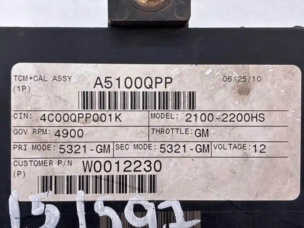 (Used) 2011 Allison 2100-2200HS, TRANSMISSION ECM- Part Number: 29545536, Serial Number: BK5536N1015401AC, A5100QPP, CIN: 4C00QPP001K, GOV RPM: 4900, THROTTLE: GM, PRI MODE: 5321-GM, SEC MODE: 5321-GM, 12 Volts, Customer P/N: W0012230, E11, 032849, 10R022849, Supplier Number: ATA5101, MODEL: A51, Plug Pins: 80 Pins Plug Rectangular, Reference images for condition. For more information about this item, give us a call. We ship Worldwide! (CRG HEAVY TRUCK PARTS) 929 W PULASKI HWY, ELKTON, MD 21921, Serial#: BK5536N1015401AC, Engine Make: Other, Engine Model: Other
