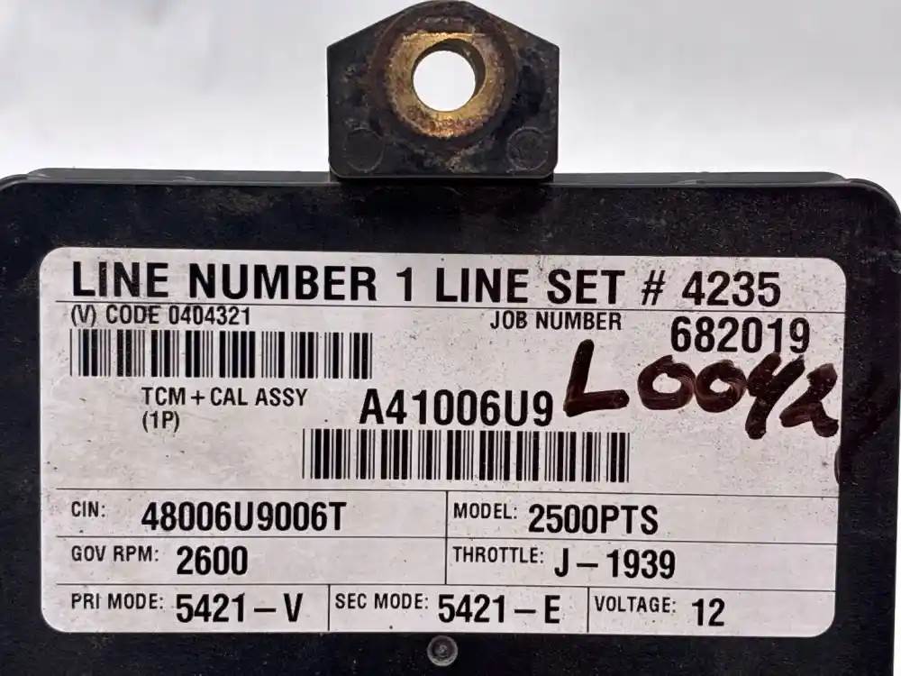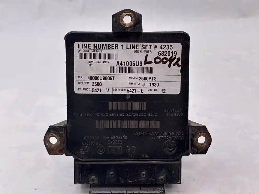 (Used) Allison 2500PTS , TRANSMISSION ECM- Part Number: 29545322, Serial Number: BK5322N173075YX1, 12 Volts A41006US9, CIN: 48006U96T, GOV RPM: 2600, THROTTLE: J--1939, PRI MODE: 5321-V, SEC MODE: 5321-E, E11, 022849, 10 R 022849, Supplier Number: ATA4103, MODEL: A41, Plug Pins: 80 Pins Plug Rectangular, Reference images for condition. For more information about this item, give us a call. We ship Worldwide! (CRG HEAVY TRUCK PARTS) 929 W PULASKI HWY, ELKTON, MD 21921, Serial#: BK5322N173075YX1