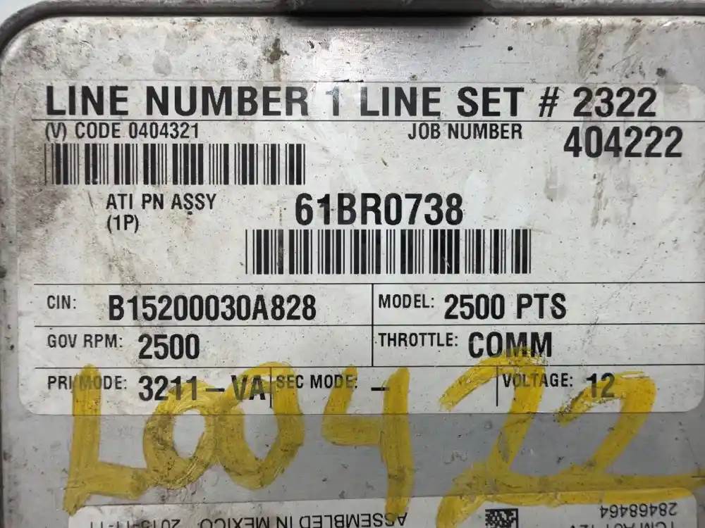 (Used) 2012 Allison 2500 PTS , TRANSMISSION ECM- Part Number: 29550689, Serial Number: BK0689A153150802, (V) CODE: 0404321, JOB NUMBER 40422, ATI PN ASSY (1P) 61BR0738, CIN: B15200030A828, MODEL: 2500 PTS, GOV RPM: 2500, THROTTLE: COMM, PRI MODE: 3211-VA, SEC MODE: --, VOLTAGE: 12V, TCM Model: A61, E11, 10R-042849, 1 Rectangular Plug with 80 Pins, Reference images for condition, For more information about this item, give us a call. We ship Worldwide! (CRG HEAVY TRUCK PARTS) 929 W PULASKI HWY ELKTON, MD 21921, Serial#: BK0689A153150802, Engine Make: International, Engine Model: MAXXFORCE 7