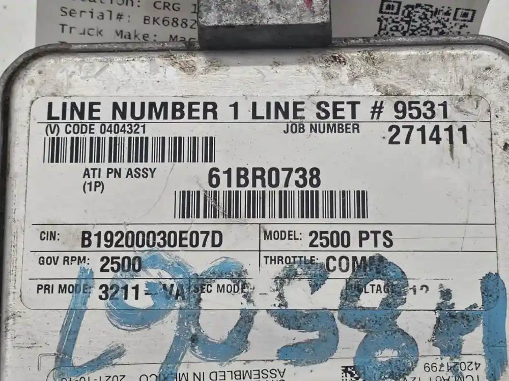 (Used) 2015 Allison 2500PTS, TRANSMISSION ECM- Part Number: 29556882, Serial Number: BK6882A 112890113, TCM Model: A61, E11, 10R-042849, 03 2849, 42021799, (V) Code 0404321, ATI PN ASSY (1P) 61BR0738, CIN: B19200030E07D, GOV RPM: 2500, THROTTLE: COMM, PRI MODE: 3211-VA, Voltage: 12 1 Rectangular Plug with 80 Pins, Reference images for condition, For more information about this item, give us a call. We ship Worldwide! (CRG HEAVY TRUCK PARTS) 929 W PULASKI HWY ELKTON, MD 21921, Serial#: BK6882A 112890113, Engine Make: Mack, Engine Model: MP7, Casting#: 29556882