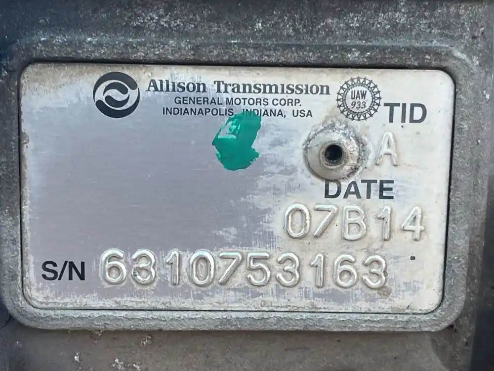 (Used) 2007 Allison (AT), TRANSMISSION ASSEMBLY- Model: 2500PTS, Serial Number: 6310753163, Engine: International DT466, Reference images for condition, For more information about this item, give us a call. We ship worldwide! (CRG HEAVY TRUCK PARTS) 929 W PULASKI HWY, ELKTON, MD 21921, Serial#: 6310753163, Engine Make: International, Casting#: 6310753163, Engine Model: DT466