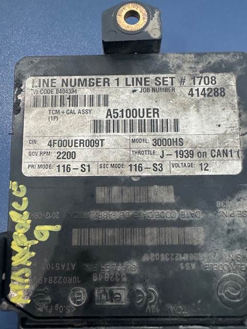 (GOOD USED) Allison A51 OEM Automatic Transmission TCM, for sale!!!! CIN # 4F00UER009T; Transmission Model: Allison 3000HS;Supplier Part #: ATA5105; Base Part #: 29545536; Stock #: TCM48