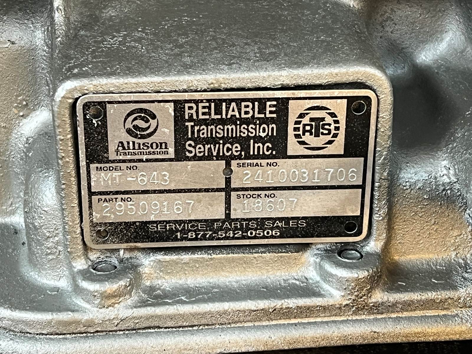 (GOOD USED w/ WARRANTY & NO CORE) Allison MT643 Transmission For Sale w/ PTO Provision/Gear, MT-643, Part No. 29509167, Serial No 2410031706, Stock # 9548 | Tested & Inspected!