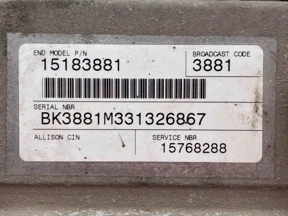 (Used) 2004 Allison , TRANSMISSION ECM- Part Number: 29537441, Serial Number: BKDUTCM331326867, ECU-TCM, 12 VOLTS, 466, END MODEL P/N: 15183881, BROADCASST CODE: 3881, SERIAL NBR: BK3881M331326867, SERVICE NBR: 15768288, 2 Rectangular Plug with 32 Pins each, Reference images for condition, For more information about this item, give us a call. We ship Worldwide! (CRG HEAVY TRUCK PARTS) 929 W PULASKI HWY ELKTON, MD 21921, Serial#: BKDUTCM331326867, Engine Make: Caterpillar, Engine Model: C7, Casting#: 29537441