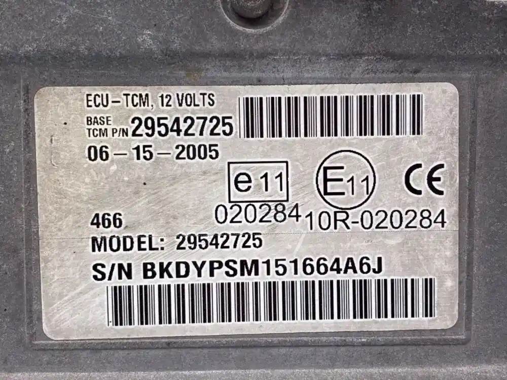 (Used) 2006 Allison, TRANSMISSION ECM- Part Number: 29542725, Serial Number: BKDYPSM151664A6J, E 11, 020284, 10R-020284, MODEL: 29542725, 2 Rectangular Plug with 32 Pins each, Reference images for condition. For more information about this item, give us a call. We ship Worldwide! (CRG HEAVY TRUCK PARTS) 929 W PULASKI HWY, ELKTON, MD 21921, Serial#: BKDYPSM151664A6J, Engine Make: Cummins, Engine Model: ISB, Casting#: 29542725