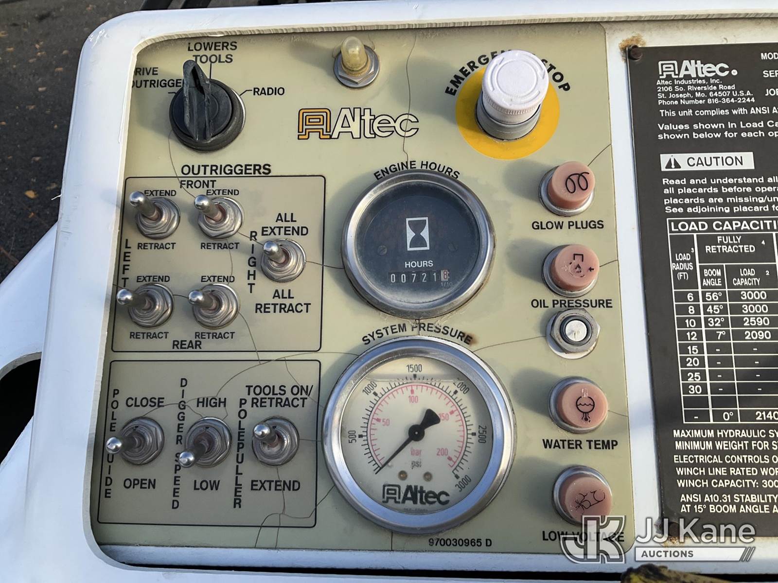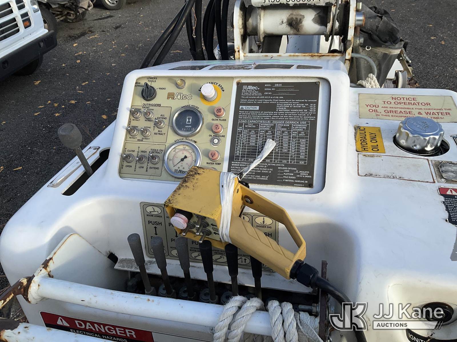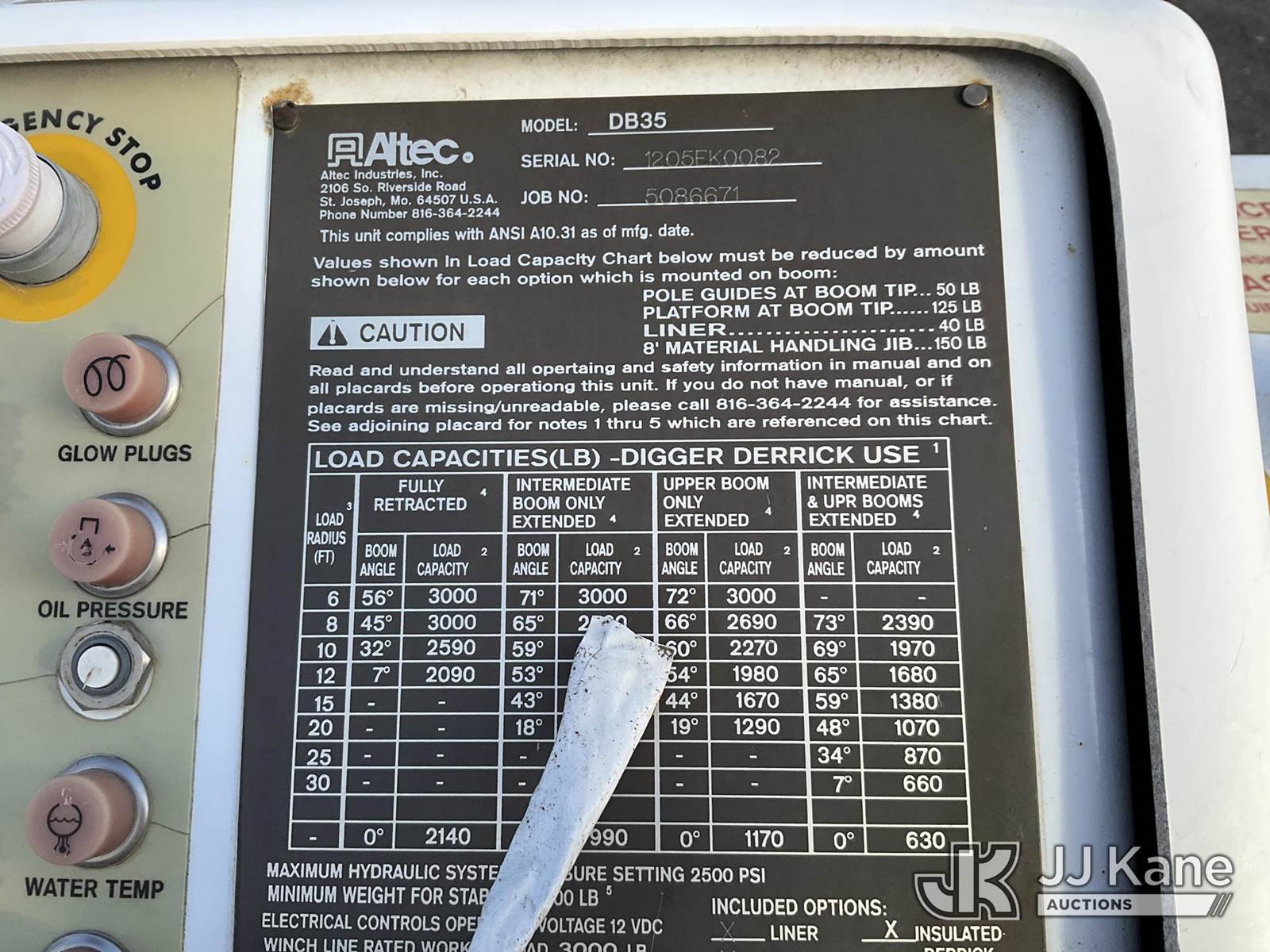 Altec DB35, 3,000 Lb Back Yard Digger Derrick s/n 1205EK0082, with 35 ft. sheave height, heel winch, pole guides, pendant control & 4 outriggers, with Support trailer 4J6UF18276B081362, 80/20 tax split on unit and trailer (Not Running, Condition Unknown) NOTE: This unit is being sold AS IS/WHERE IS via Timed Auction and is located in Salt Lake City, UT. Inspection & preview days for this unit are the 2 business days prior to the first day of items closing for this auction, item is located at 2353 N Redwood Rd Salt Lake City, UT 84116 and hours of operations are 8a-4p. Titles executed exactly as bidder registered. Ensure your name and/or business name and address in JJ Kane and/or ProxiBid is correct before bidding. For more information & removal arrangements please contact office staff @ (801) 519-0123. (Manuals provided in cab) (Buyer is responsible for removal. Assistance by consignor or JJ Kane Auctions is not assured.)