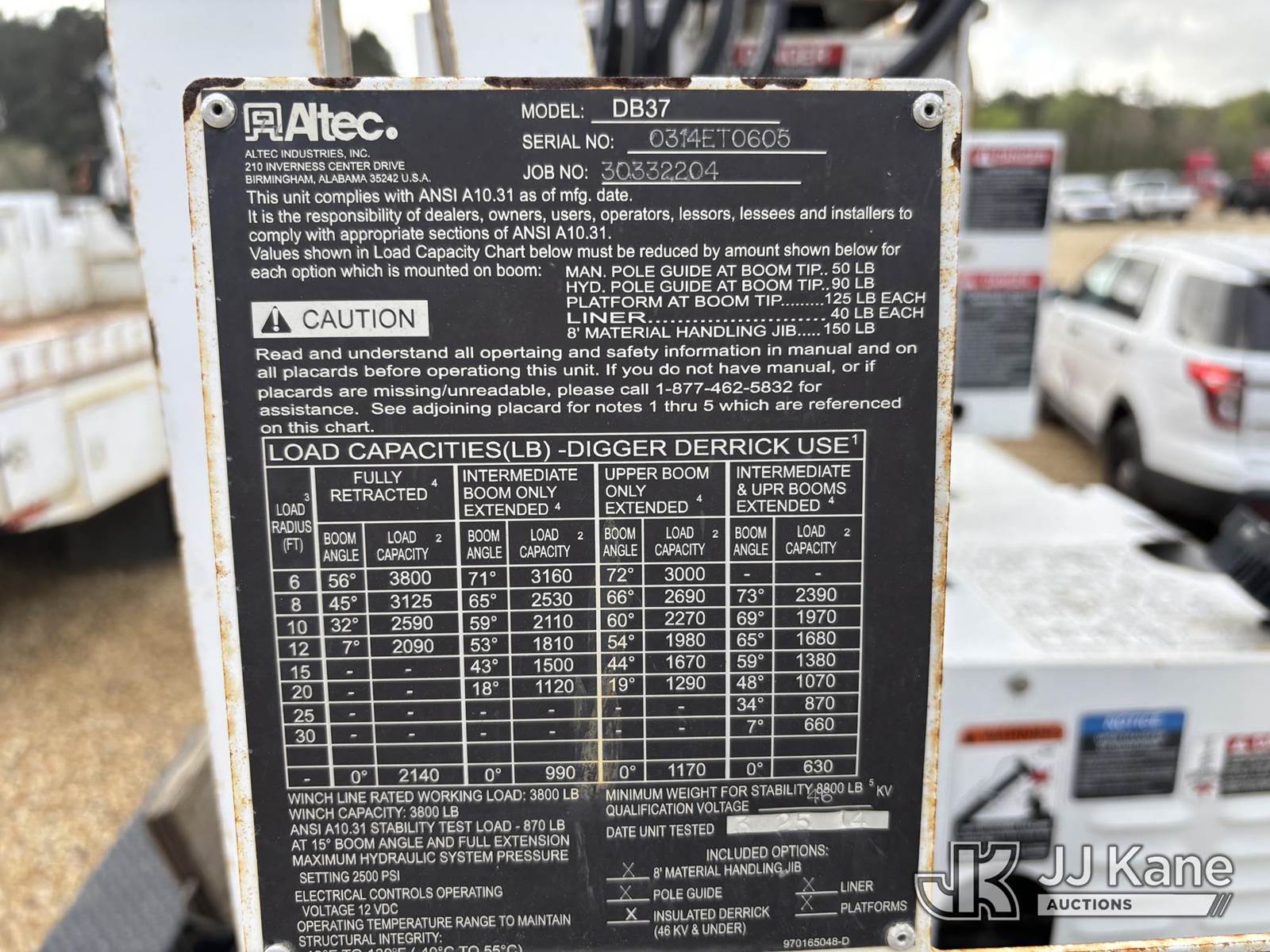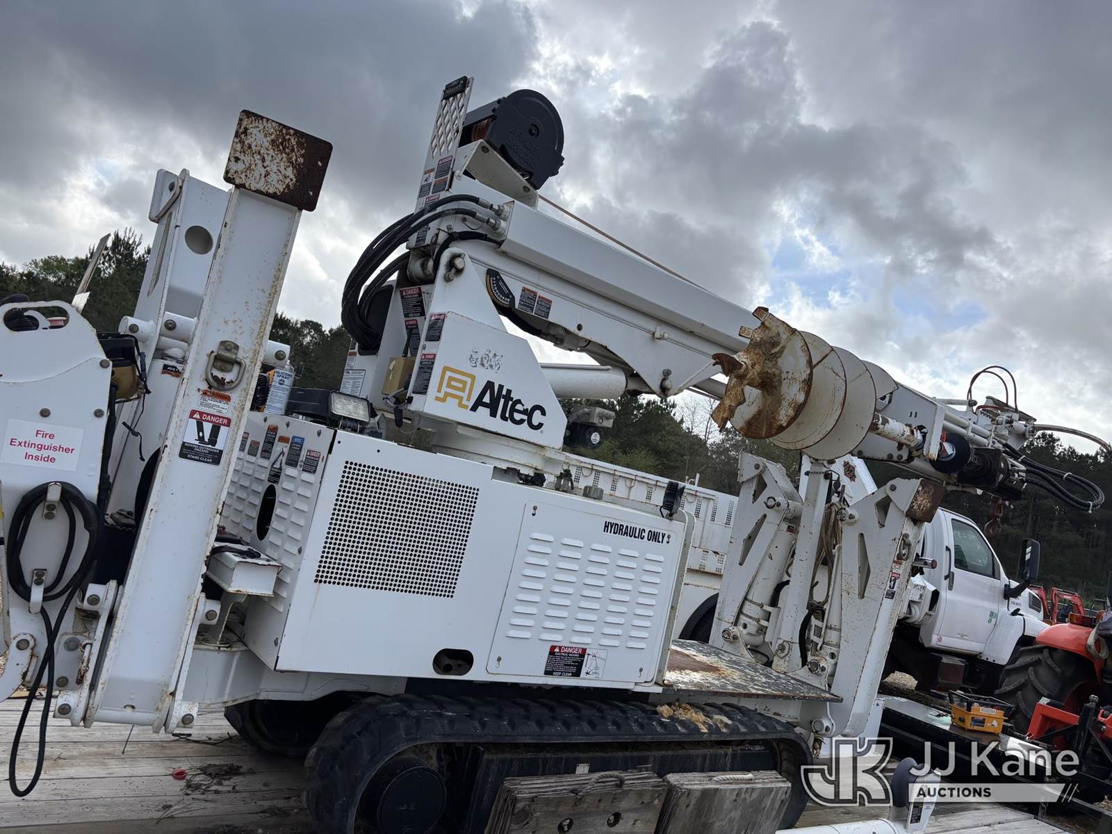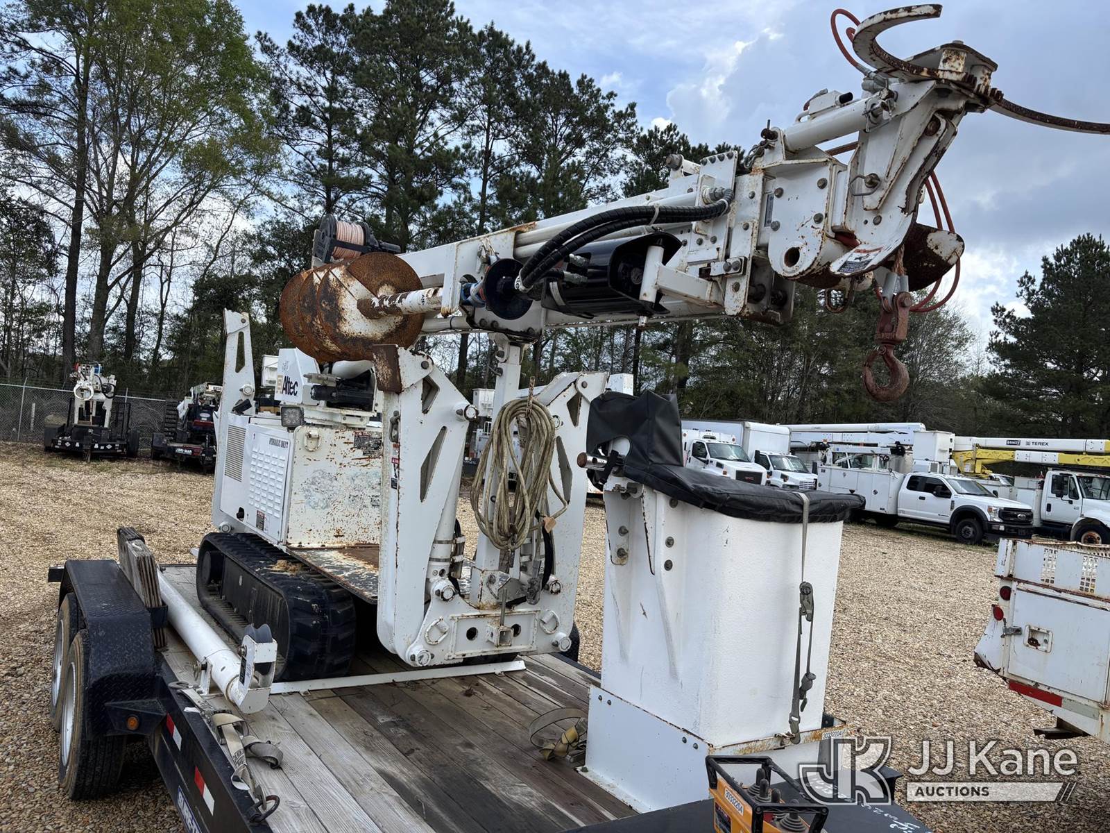 Altec DB37, 3,800 Lb Back Yard Digger Derrick s/n 0314ET0605, with wireless remote, pin-on bucket, mounted on Tracked Backyard Carrier, s/n 0314ET0605, diesel, Hydrostatic, with Sure-trac support trailer, VIN: 5JW2U1821E1090571, Selling With Item ID 1583873.(Equipment & Trailer Price Will Be Split Out On Invoice To Reflect 80/20, Equipment To Trailer Price Ratio For Tax Purposes.) (Jump to Start, Runs but Dies when Controls are Applied, Throttle Lever Broken) (Reads 536 hours) NOTE: This unit is being sold AS IS/WHERE IS via Timed Auction and is located in Robert, LA. Inspection & preview days for this unit are by appointment only; please contact us at contact@jjkane.com or 84-Go-JJKane for more details. License # LA AB-154 (Missing manuals, See Auction Company for Manufacturers Information to obtain manuals) (Buyer is responsible for removal. Assistance by consignor or JJ Kane Auctions is not assured.)