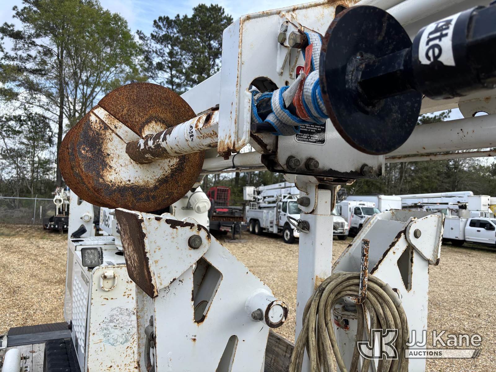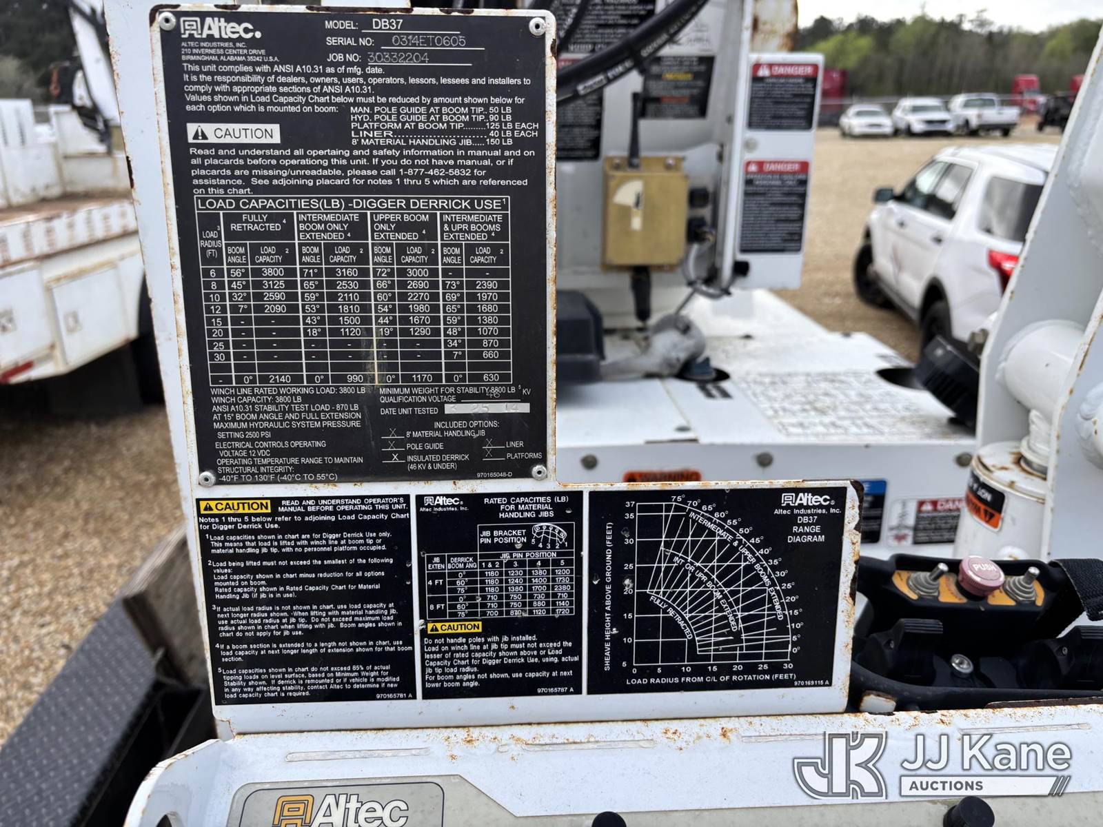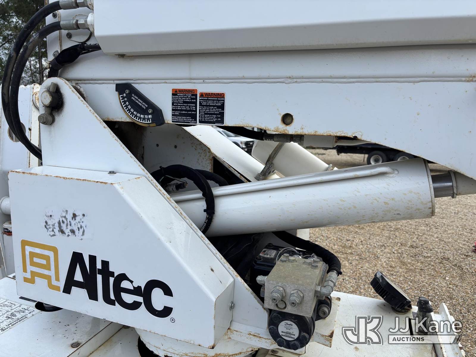 Altec DB37, 3,800 Lb Back Yard Digger Derrick s/n 0314ET0605, with wireless remote, pin-on bucket, mounted on Tracked Backyard Carrier, s/n 0314ET0605, diesel, Hydrostatic, with Sure-trac support trailer, VIN: 5JW2U1821E1090571, Selling With Item ID 1583873.(Equipment & Trailer Price Will Be Split Out On Invoice To Reflect 80/20, Equipment To Trailer Price Ratio For Tax Purposes.) (Jump to Start, Runs but Dies when Controls are Applied, Throttle Lever Broken) (Reads 536 hours) NOTE: This unit is being sold AS IS/WHERE IS via Timed Auction and is located in Robert, LA. Inspection & preview days for this unit are by appointment only; please contact us at contact@jjkane.com or 84-Go-JJKane for more details. License # LA AB-154 (Missing manuals, See Auction Company for Manufacturers Information to obtain manuals) (Buyer is responsible for removal. Assistance by consignor or JJ Kane Auctions is not assured.)