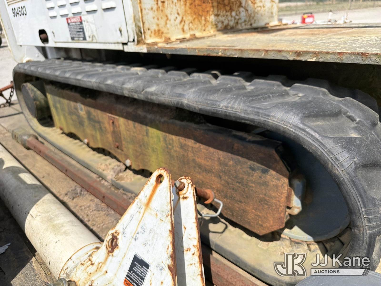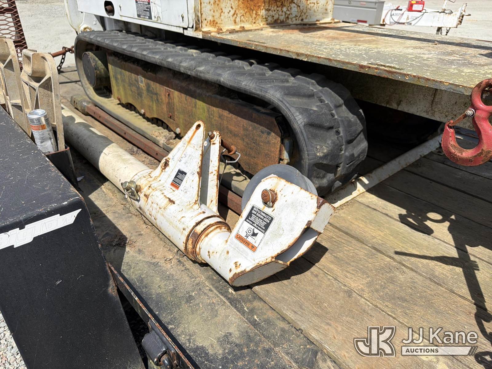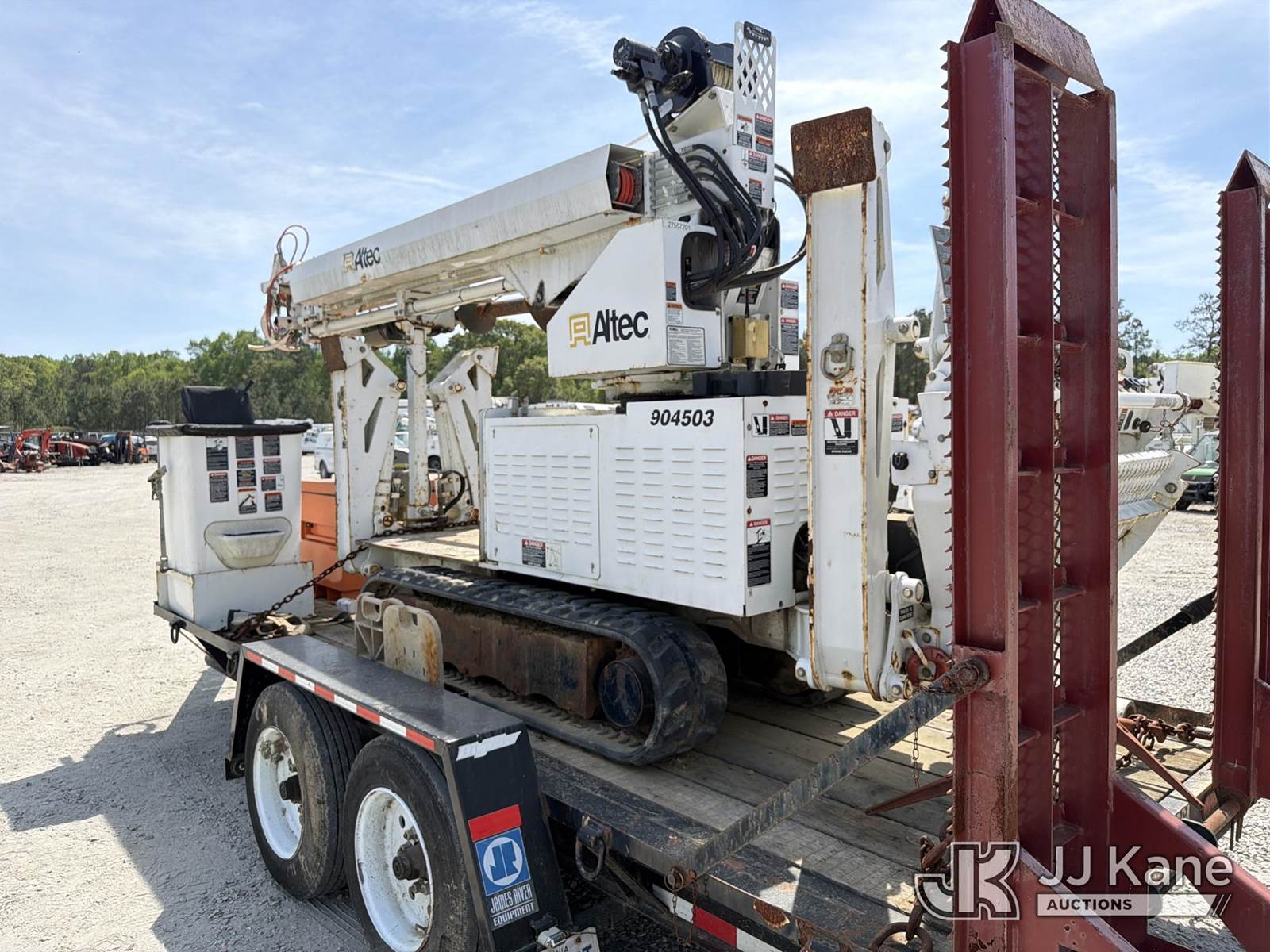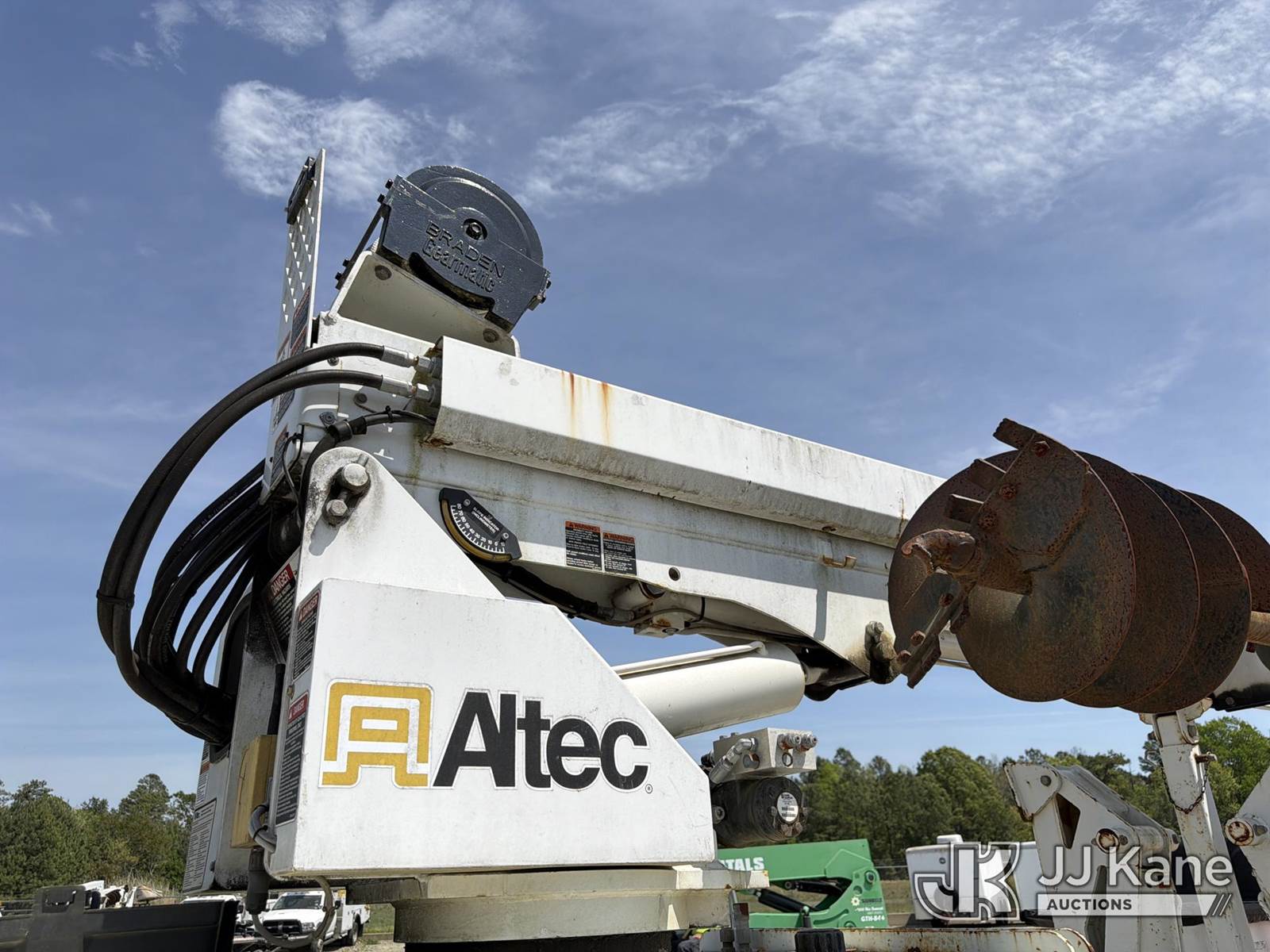Altec DB37, 3,800 Lb Back Yard Digger Derrick s/n 1113ET0555, with 37 ft sheave height, pin-on bucket, remote, heel winch, pole grabs & support trailer Vin: 4KNUT1620EL161016, mounted on McElroy Crawler Back Yard Carrier, s/n 059860, Selling With ID 1604239.(Equipment & Trailer Price Will Be Split Out On Invoice To Reflect 80/20, Equipment To Trailer Price Ratio For Tax Purposes.) (Cranks, Not Running, Condition Unknown) (Reads 800 hours) NOTE: This unit is being sold AS IS/WHERE IS via Timed Auction and is located in Chester, VA. Inspection & preview days for this unit are the 2 business days prior to the first day of items closing for this auction, item is located at 13301 Great Coastal Dr Chester, VA 23836 and hours of operations are 7am-3pm. For pre-sale questions, please contact Doug Caton @ 804-807-4574. (Missing manuals, See Auction Company for Manufacturers Information to obtain manuals) (Buyer is responsible for removal. Assistance by consignor or JJ Kane Auctions is not assured.)