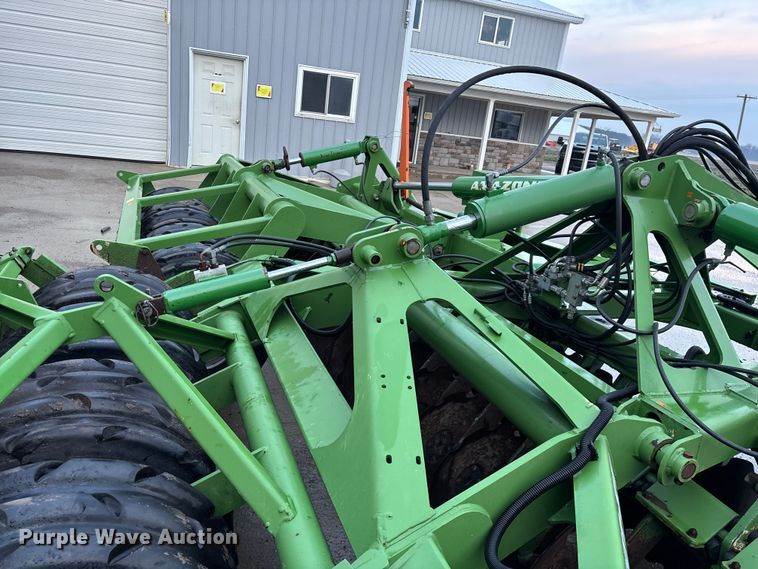 Sunflower 1435 double off-set disk, Overall width: 32', Serial: AGCS14350CZ100203, Features, Front blades, Diameter: 21", Spacing: 9", ,...