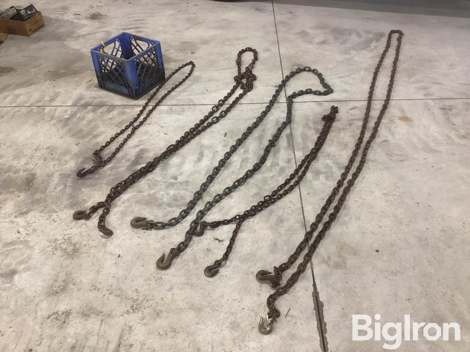Assortment of Log Chains, Qty (5) Various Lengths, Milk Crate Included