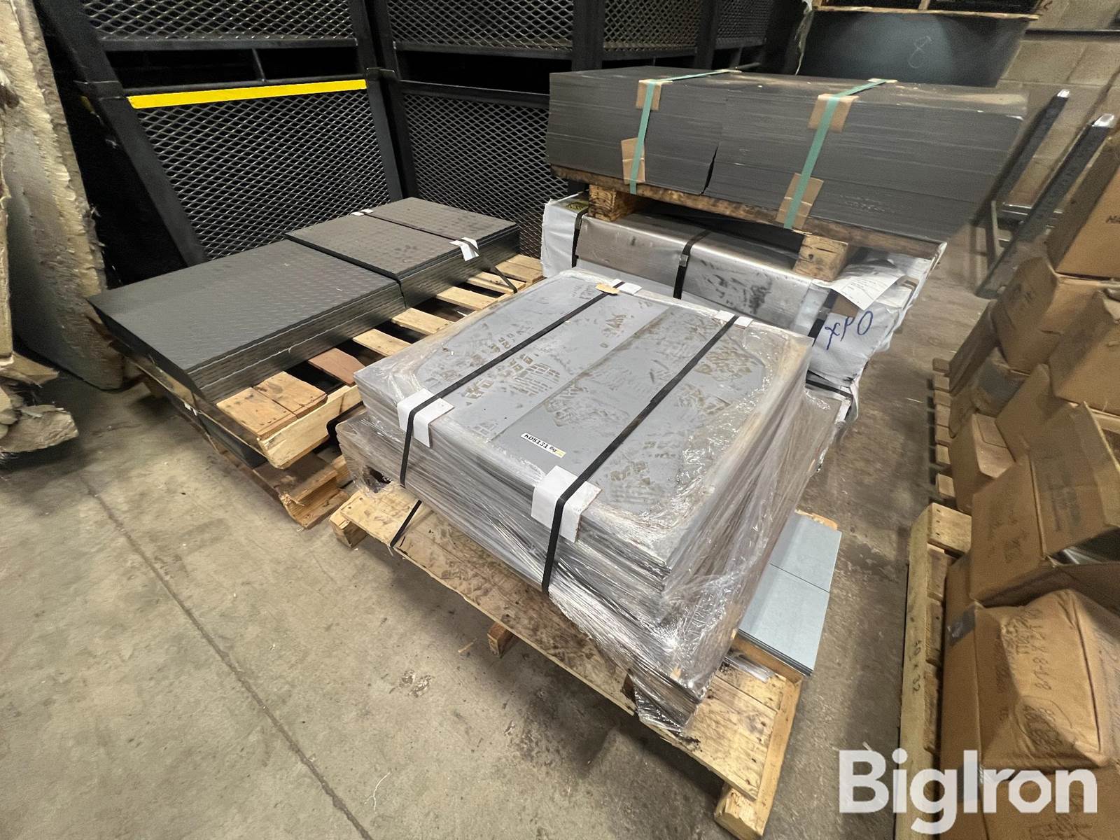 Assortment Of Steel, 3 Bundles of 16 gauge 20"X20", Bundle of 16 gauge 12"X27", stack of 6"X39", 2 stacks of 24"X24"X3/8" diamond plate